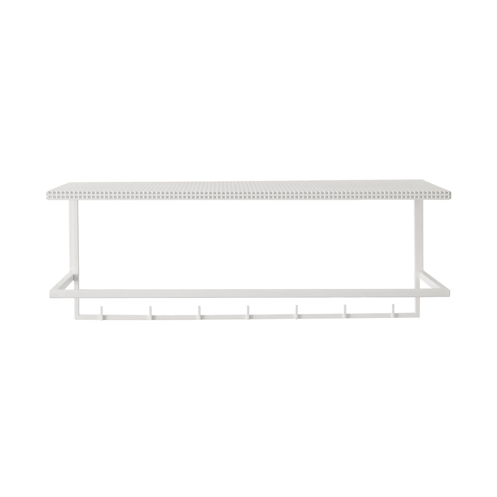 Multifunctional design at its best, the Kristina Dam Studio Grid wall mounted coat rack with shelf transforms your entrance area with its elegant silhouette. Practical as well as stylish, this coat hanger features several storage options that suit a huge variety of items. For example, the hooks are perfect for coats, bags, and hats, while the angular bar suits scarves, umbrellas, and hangers. On top, a perforated steel shelf gives you a generously sized area for accessories and decorative objects. A space-saving design, this wall mounted coat rack with shelf leaves the floor empty and keeps items at eye-level and easily accessible. Made from steel with a durable powder-coated finish, the Kristina Dam Studio Grid Coat Hanger comes in two timeless versions: black and white.