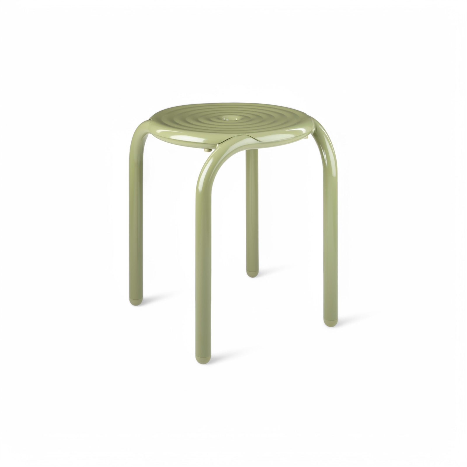 Whether used as an extra seat or as a practical side table, the Tom Dixon Groove Stool will revamp the mood and functionality of any outdoor space. The design references the iconic art deco style, featuring raised ridges arranged in concentric circles and tubular legs that seem to “grow” from the seat. Compact and lightweight, the Groove Stool is practical, easy to carry around the garden, and stacks to take as little space as possible in a storage area. Manufactured with long-lasting use in mind, the stool is made from corrosion-resistant, high-quality aluminum, finished with a scratch- and weather-resistant powder-coated surface. Choose your favorite color from the light green Moss or the off-white Putty to transform your outdoor living space. Love this design? A side chair, armchair and a dining table from the same series are also available.