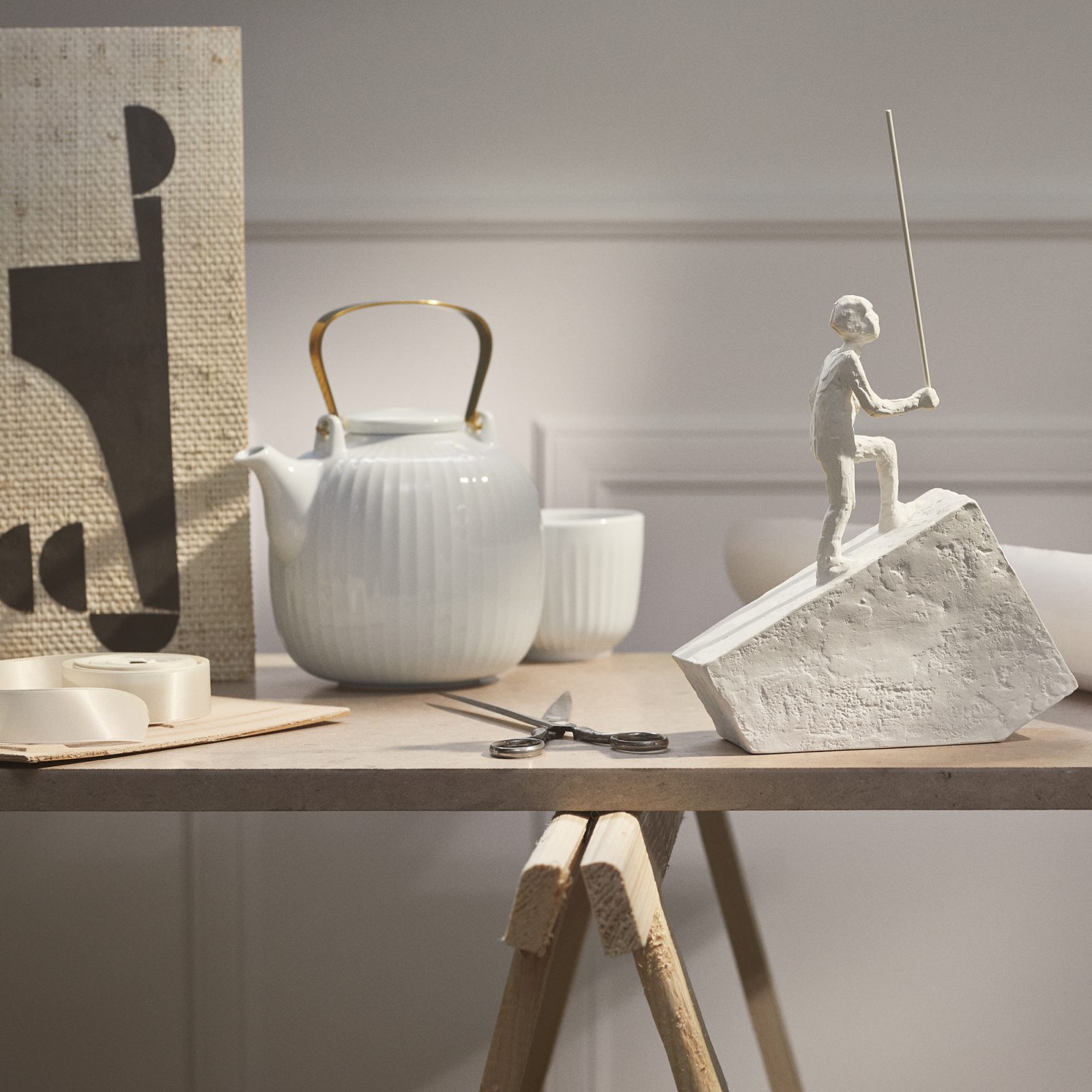 Enjoy the art of tea with the Kähler Hammershøi Teapot, a blend of timeless design and practical elegance. Created by Hans-Christian Bauer, this teapot features the signature Hammershøi grooves, a crisp white porcelain finish, and a decorative brass-coated handle for a touch of sophistication.