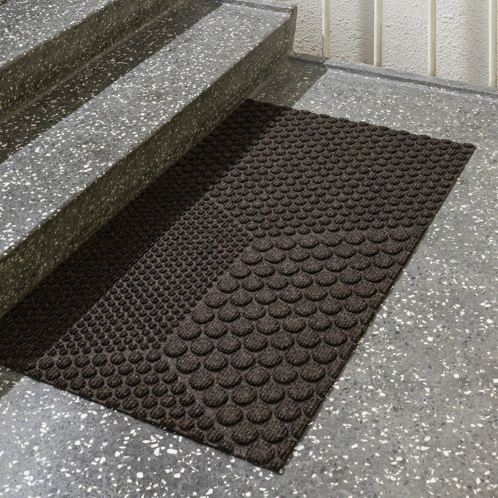 Inspired by architecture and industrial design, the Hex series from Heymat features a play between geometric patterns. Designer Lars Tornøe created the collection with circles that create hexagon shapes. The clearly organized patterns give a tranquil character to the design, while the neutral hues complement any existing color palettes. Like other Heymat products, the Hex doormats are made from recycled PET and PP, with a nitrile rubber backing that also contains up to 20% recycled content. Soft but durable, the textile layer absorbs moisture and helps trap dust and dirt. Apart from keeping this indoor entrance mat in place, the non-slip backing also prevents moisture from reaching the floor.