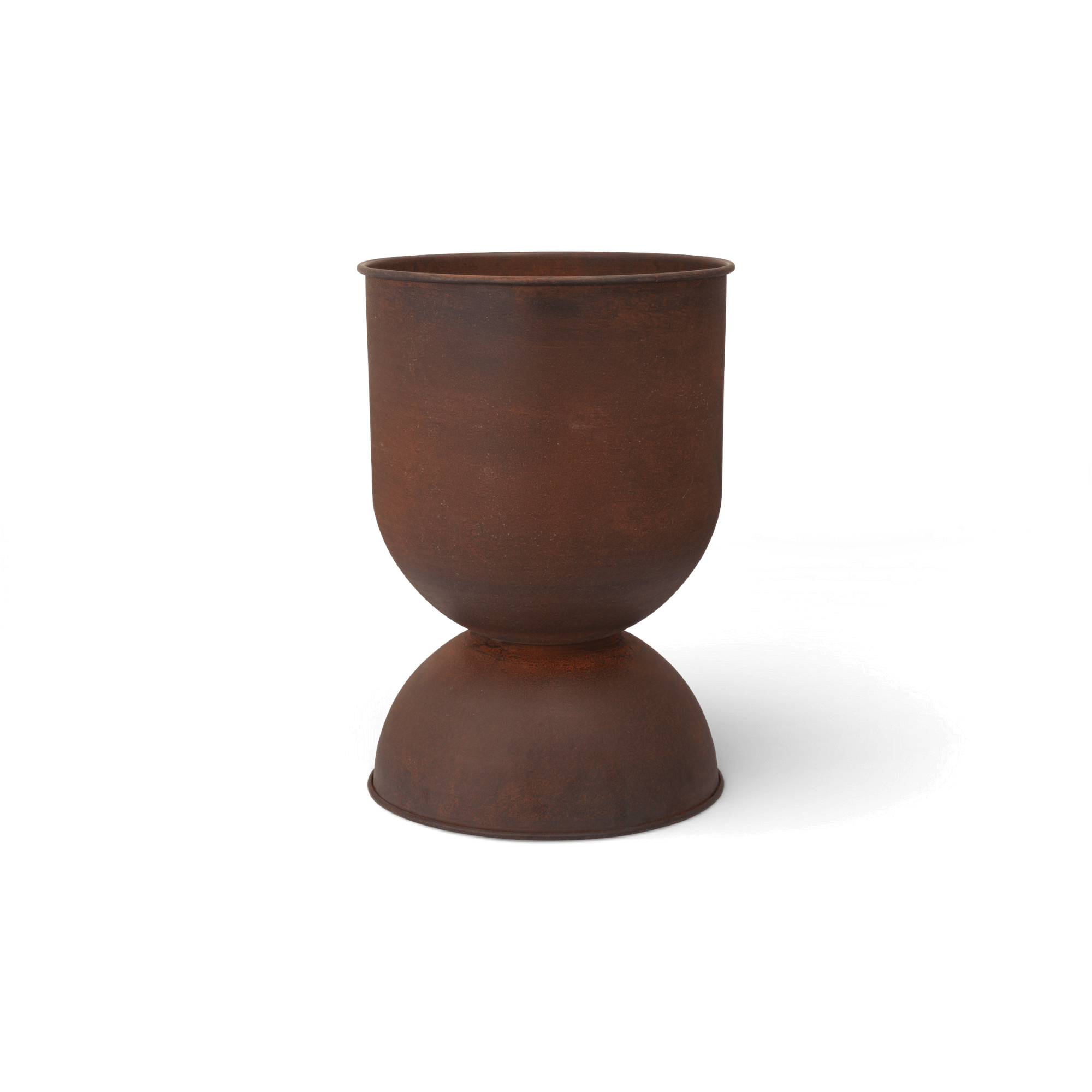 Hourglass is a planter with an old-foundry feel and a very modern trick: you can flip it. One side gives you a deeper vessel for roots that like room; turn it over and you get a shallower profile that suits smaller plants or tighter compositions. Either way, the form stays the same—wide mouth, narrowed waist, and that grounded base that makes it look good on a terrace even before anything is planted.