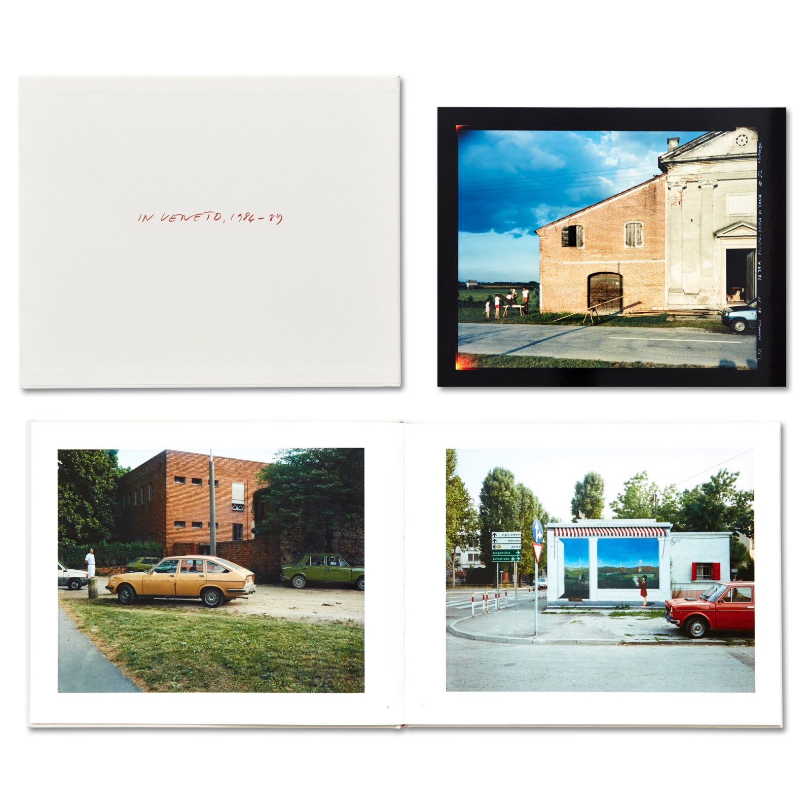 Guido Guidi’s new book, In Veneto 1984-89, opens with a big eye framed in the blind of a shop window in Mestre, an eye which, by opening like a sort of warning, announces the origin of photography itself. This book contains a selection of hitherto unpublished photographs that Guidi took between 1984 and 1989, using a Deardorff 8X10. This was the first time he had used a large format camera for a whole project, which concentrated on an area in the central Veneto, an area known for having rapidly turned into a deeply uncertain, marginal landscape, one intimately hierarchy-free. The places he visited, in the provinces of Treviso, Vicenza, Padua and Venice, seem to be almost part of the same drawing, of the same place, bearing stark testimony to the process of change that has led to the transformation of a huge rural area, driving it into a form of fragmentation known as urban spread. The photographs in these much-loved places seem to re-evoke the three truths described by Robert Adams in “Beauty in Photography”: geography, biography, and metaphor.