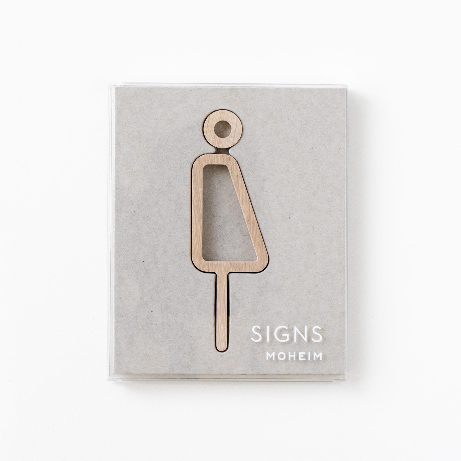 The Moheim’s interior wall/door architectural pictogram signs is a collection of most popular icon signs that help the vistors to visualize the directions and type of spaces or activities located in a premises. Designed by Shigeichiro Takeuchi, the collection made of natural wood comes in two finishes, white oak and walnut. This vertical signage is designed for all type of indoor walls and doors; it is suitable for homes, offices, public spaces, hotels and any other indoor space. Its contemporary design adds an elegant touch to any interior, it features an array of symbols that spans from directional arrow, restroom, gender neutral, accessible, wash-hand, shower, no phone, cafe, restaurant, wi-fi, no-smoking and smoking signs. The signs come with an adhesive layer on the back and a pasteboard that helps to place them correctly on every type of surfaces.