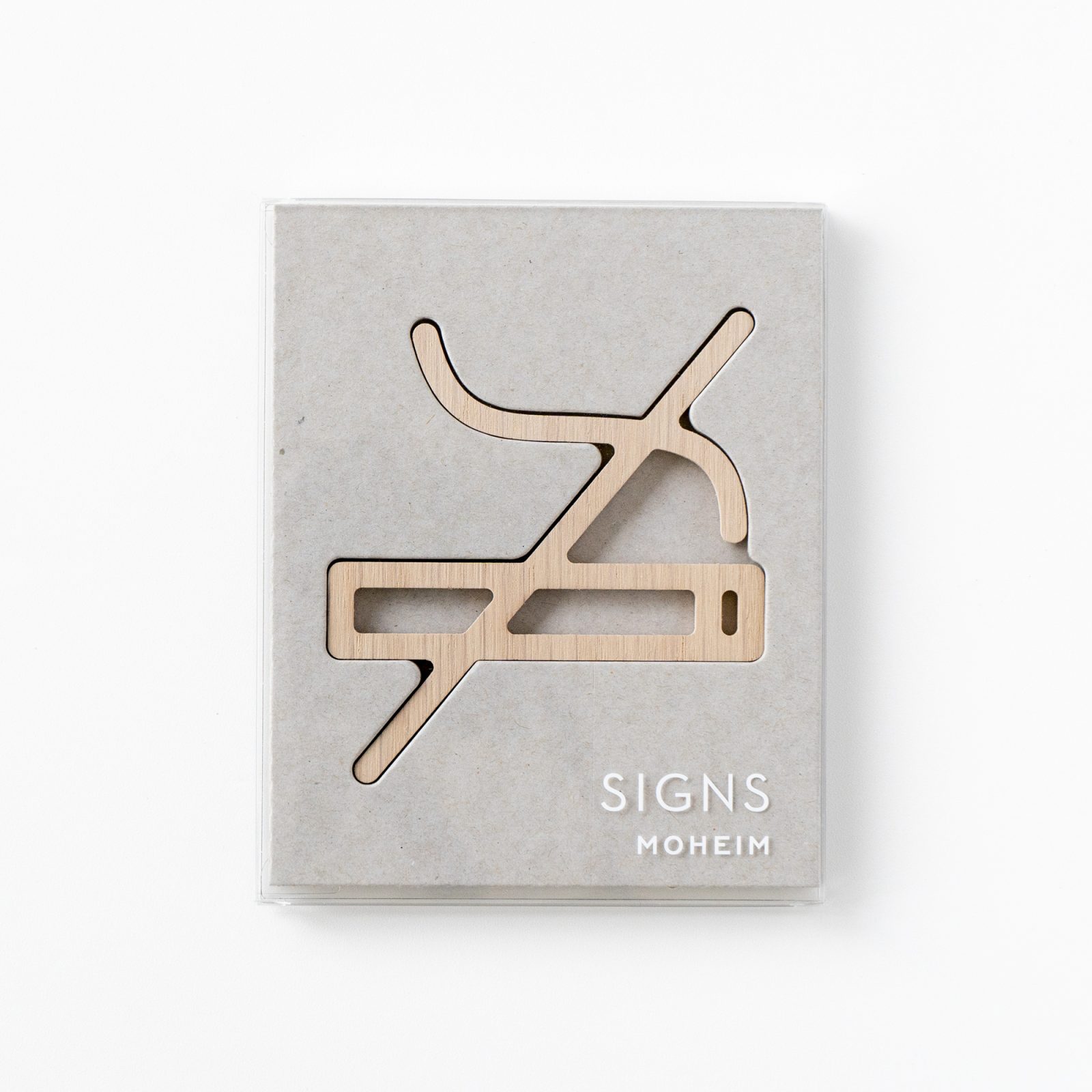 The Moheim’s interior wall/door architectural pictogram signs is a collection of most popular icon signs that help the vistors to visualize the directions and type of spaces or activities located in a premises. Designed by Shigeichiro Takeuchi, the collection made of natural wood comes in two finishes, white oak and walnut. This vertical signage is designed for all type of indoor walls and doors; it is suitable for homes, offices, public spaces, hotels and any other indoor space. Its contemporary design adds an elegant touch to any interior, it features an array of symbols that spans from directional arrow, restroom, gender neutral, accessible, wash-hand, shower, no phone, cafe, restaurant, wi-fi, no-smoking and smoking signs. The signs come with an adhesive layer on the back and a pasteboard that helps to place them correctly on every type of surfaces.