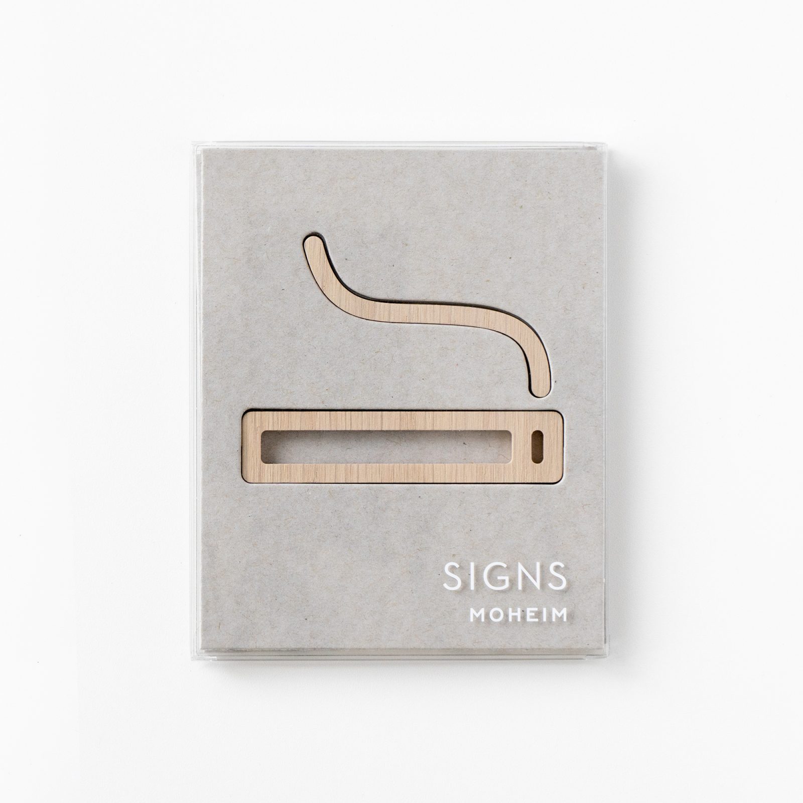The Moheim’s interior wall/door architectural pictogram signs is a collection of most popular icon signs that help the vistors to visualize the directions and type of spaces or activities located in a premises. Designed by Shigeichiro Takeuchi, the collection made of natural wood comes in two finishes, white oak and walnut. This vertical signage is designed for all type of indoor walls and doors; it is suitable for homes, offices, public spaces, hotels and any other indoor space. Its contemporary design adds an elegant touch to any interior, it features an array of symbols that spans from directional arrow, restroom, gender neutral, accessible, wash-hand, shower, no phone, cafe, restaurant, wi-fi, no-smoking and smoking signs. The signs come with an adhesive layer on the back and a pasteboard that helps to place them correctly on every type of surfaces.