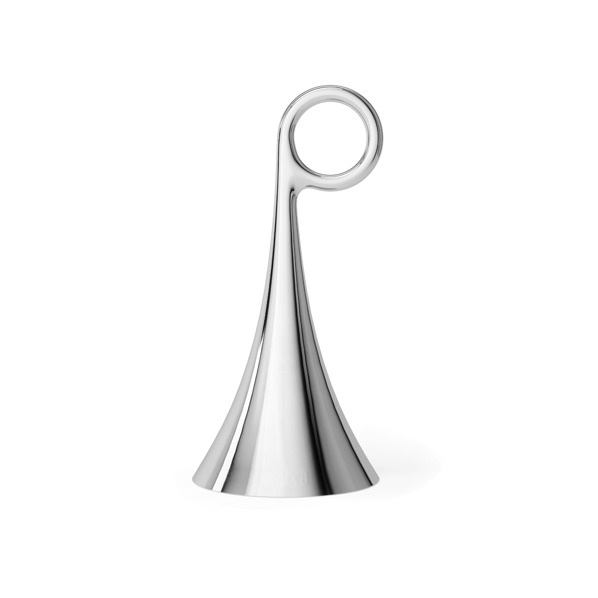 A modern dinner bell with a clean, trumpet-like profile. Designed by Sung Wook Park for Umbra, Isa Bell is made from solid brass with a polished chrome finish. The small ring at the top gives you a steady grip; a light tap produces a clear, gentle chime that carries across a room without sounding sharp.