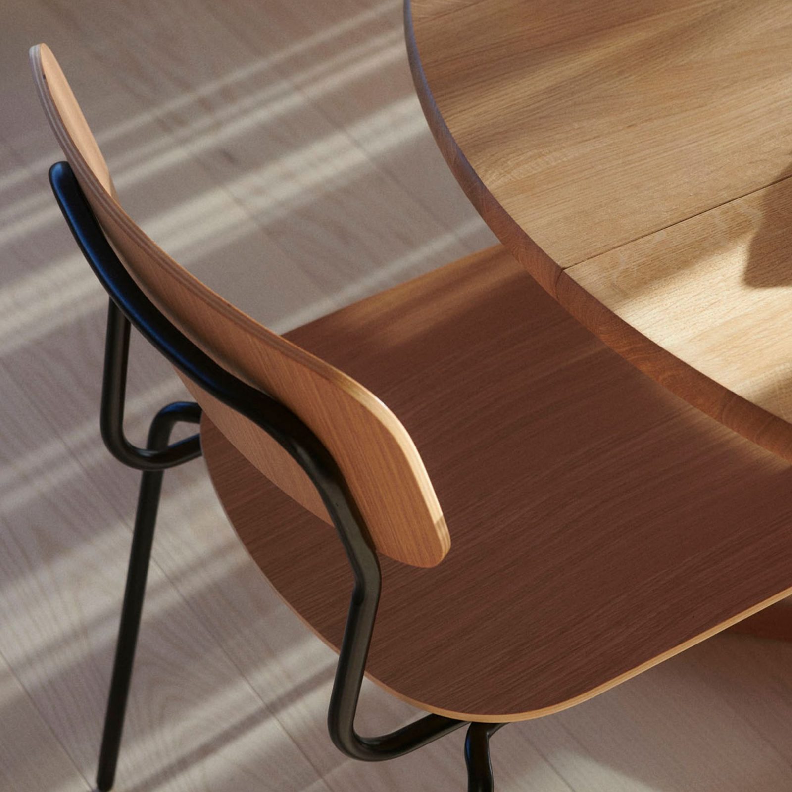 The J182 Holmen Chair captures the easygoing spirit of island life through clean, thoughtful design. Created by Jakob Thau, it pairs a gently curved oak veneer seat and backrest with slim, sturdy steel legs — a simple structure that feels both grounded and light. Its proportions are generous without being heavy, making it a versatile choice for dining areas, cafés, or meeting rooms. Stackable and built for everyday use, the Holmen Chair is as practical as it is visually calm, offering a quiet nod to Denmark’s maritime heritage without any unnecessary embellishment.