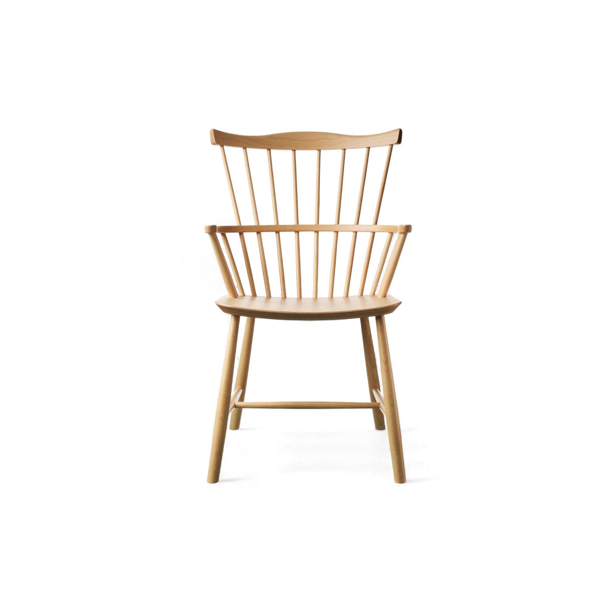 Designed by Børge Mogensen in 1950, the J52B Chair has become one of Denmark’s most recognizable seating designs. With its high-spoked backrest, gently angled armrests, and wide, contoured seat, it bridges the practical demands of daily life with an enduring sculptural presence. Inspired by traditional Windsor chairs but distinctly modern in its interpretation, the J52B offers both visual lightness and sturdy support. Available in a range of wood and color variations, this chair adapts easily to dining areas, kitchens, or reading nooks while maintaining the honest design language that defines Mogensen’s work.