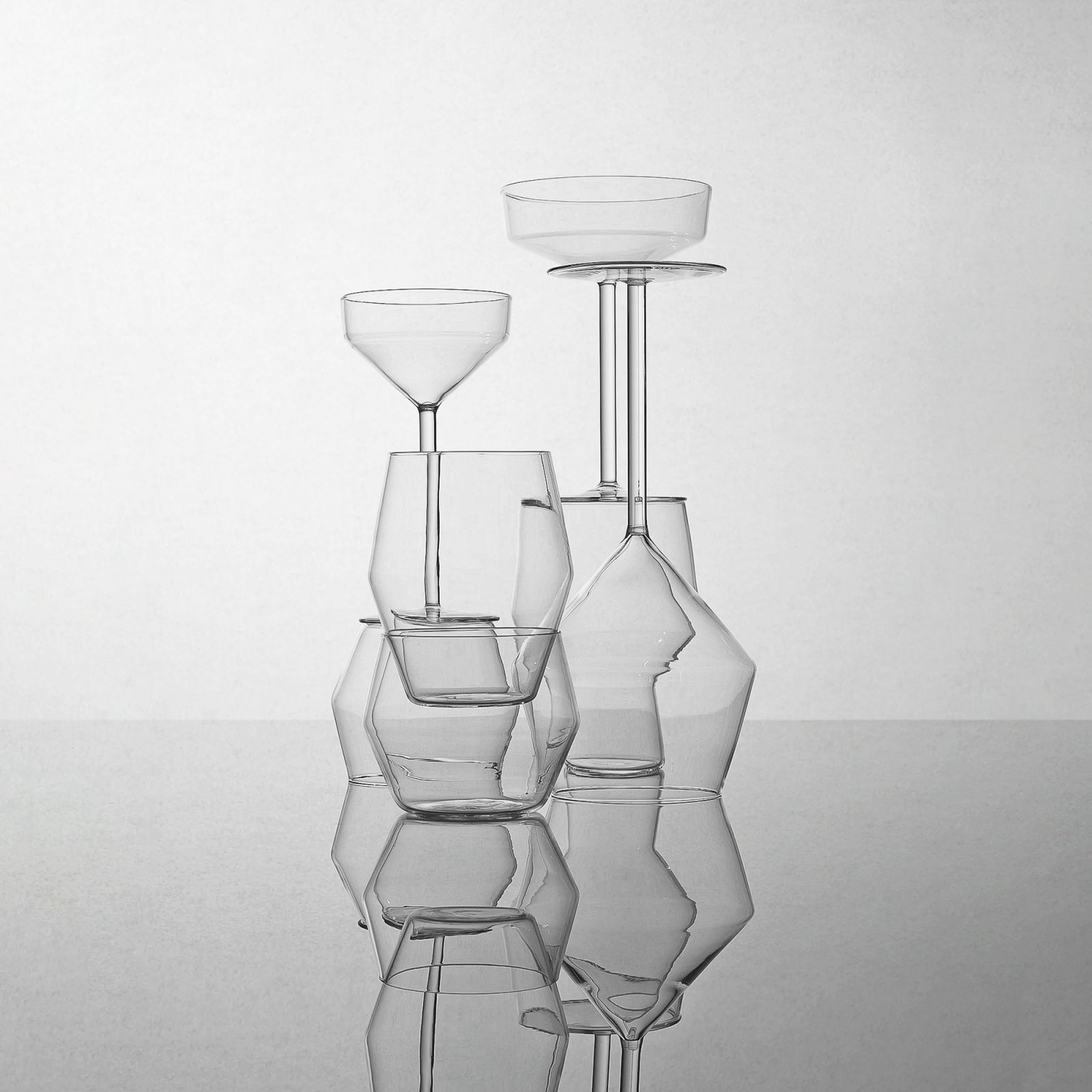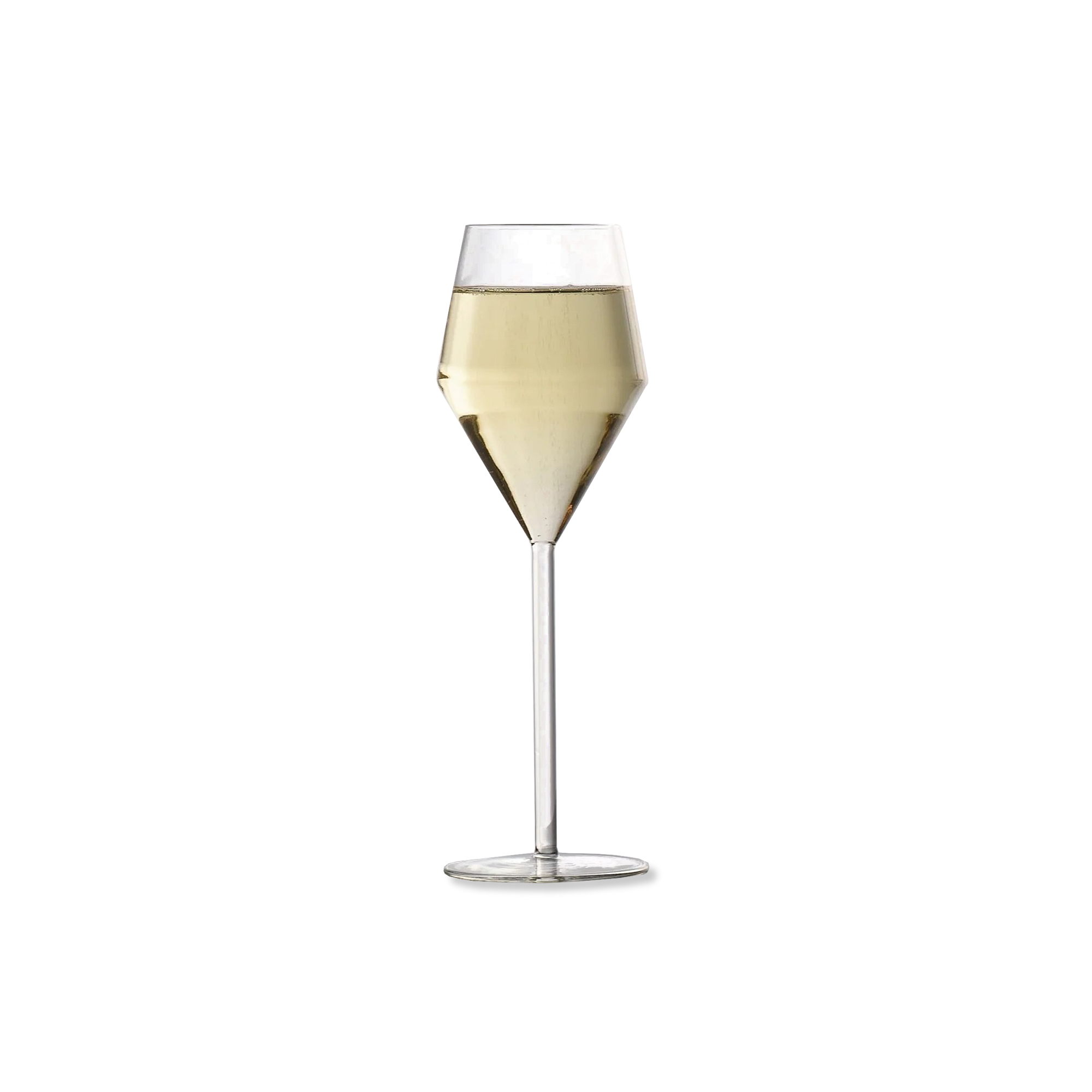 The elongated bowl narrows into a faceted base, giving the glass a distinctive geometric profile. Slim and lightweight yet durable, it’s designed for sparkling wine, champagne, or prosecco, keeping bubbles lively while adding a sharp graphic line to the table. As practical as it is sculptural, the pair works equally well for celebrations or everyday use.