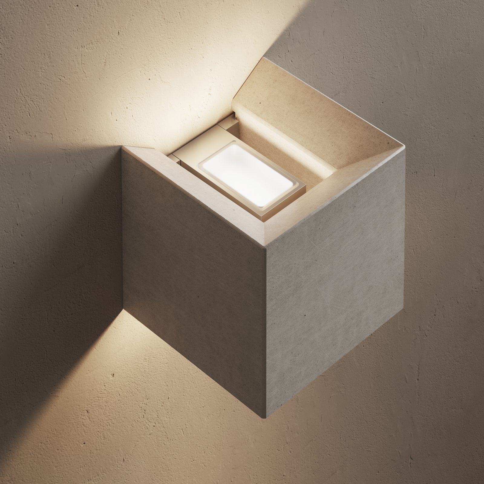 Cobu defies the conventional notion of a cube; rather, it is the unraveling, the deconstruction of this geometric form. Encased within textured cement lies a robust, protective shell, cradling a varnished precious metal core that radiates a dual light beam. These seemingly disparate elements seamlessly merge, forming a symphony of perfect balance and harmony. Cobu transcends its physical form, akin to a chameleon, blending effortlessly into its surroundings when painted to match its supporting wall—a poetic manifestation capable of illuminating its surroundings with grace and beauty.