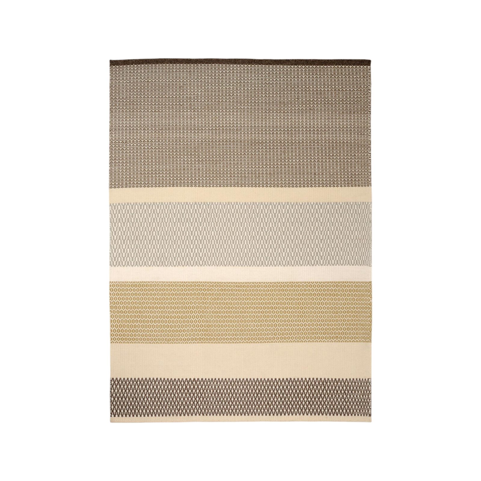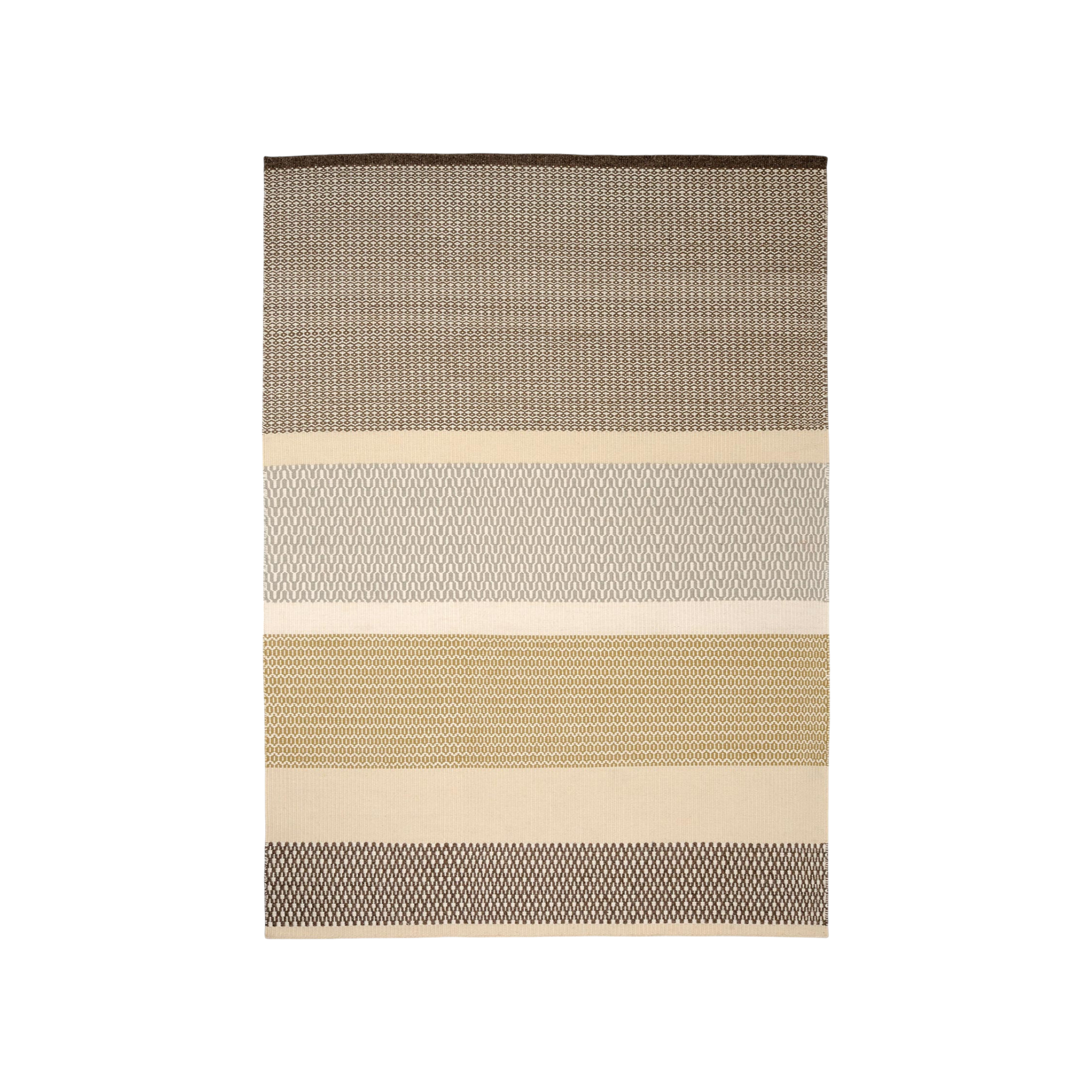 Khadi is a hand-woven wool rug defined by horizontal bands that shift quietly across the surface. Each band uses a slightly different weave or density, creating a steady progression rather than a pattern that repeats or draws attention to itself.