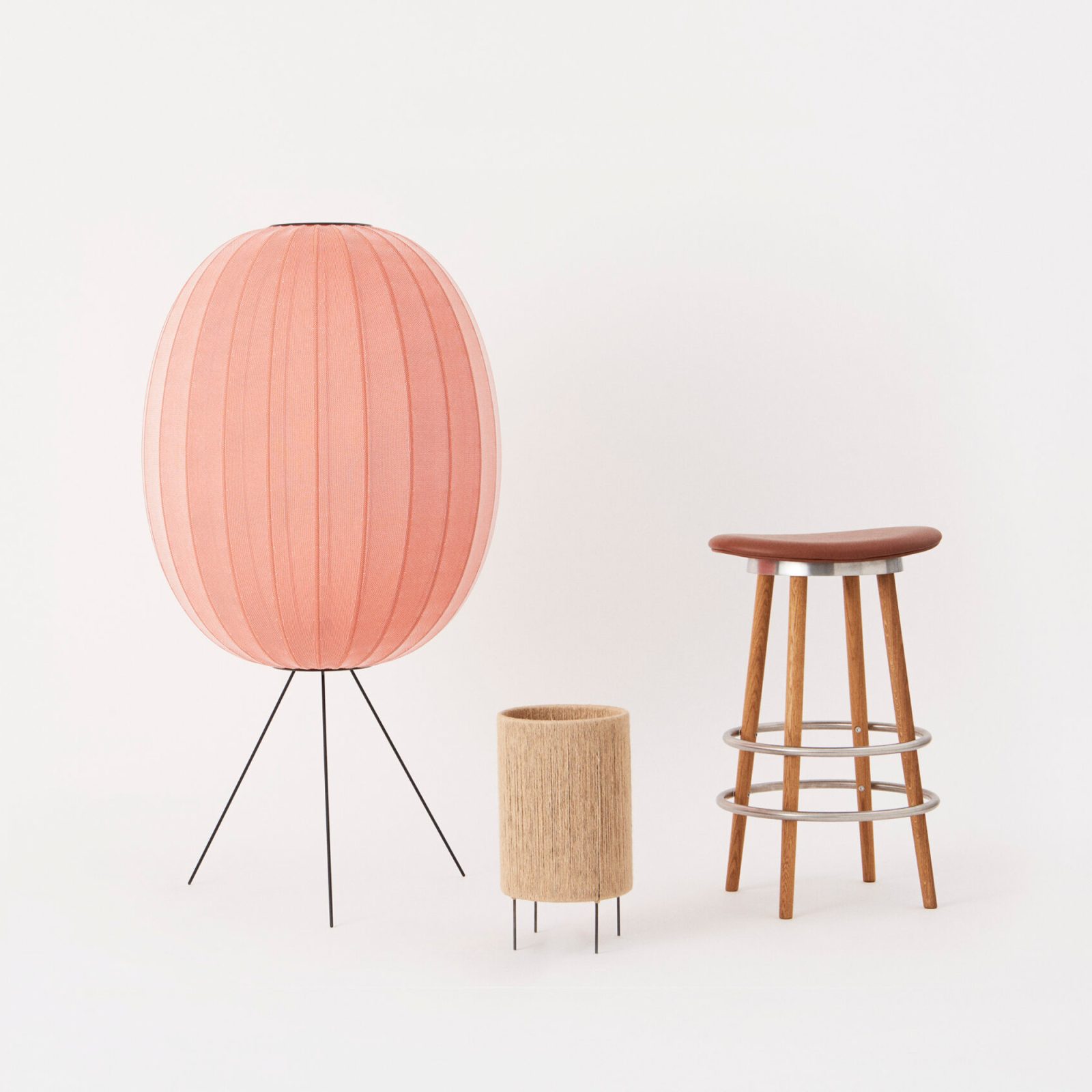 A modern lamp with a distinctive design, the Made by Hand Knit-Wit Floor Lamp 65 creates a focal point with ease, in residential or public spaces. The collection was created by Copenhagen-based design firm Iskos Berlin, who took inspiration from traditional knitting to infuse lighting with a rich materiality. Featuring a spherical form, the shade also boasts a symmetrical segmented pattern created by a steel frame. Covering the metal in a tight embrace, the mesh fabric has a fine texture that keeps the light bulb visible. Illuminated from within, the material reveals the yarn pattern in more detail, filtering the light at the same time. This version of the Knit-Wit floor lamp features a rounded black base and comes with a switch cord covered in a matching black fabric. As for the shade, it comes in a series of gorgeous colors, to look amazing in any décor.