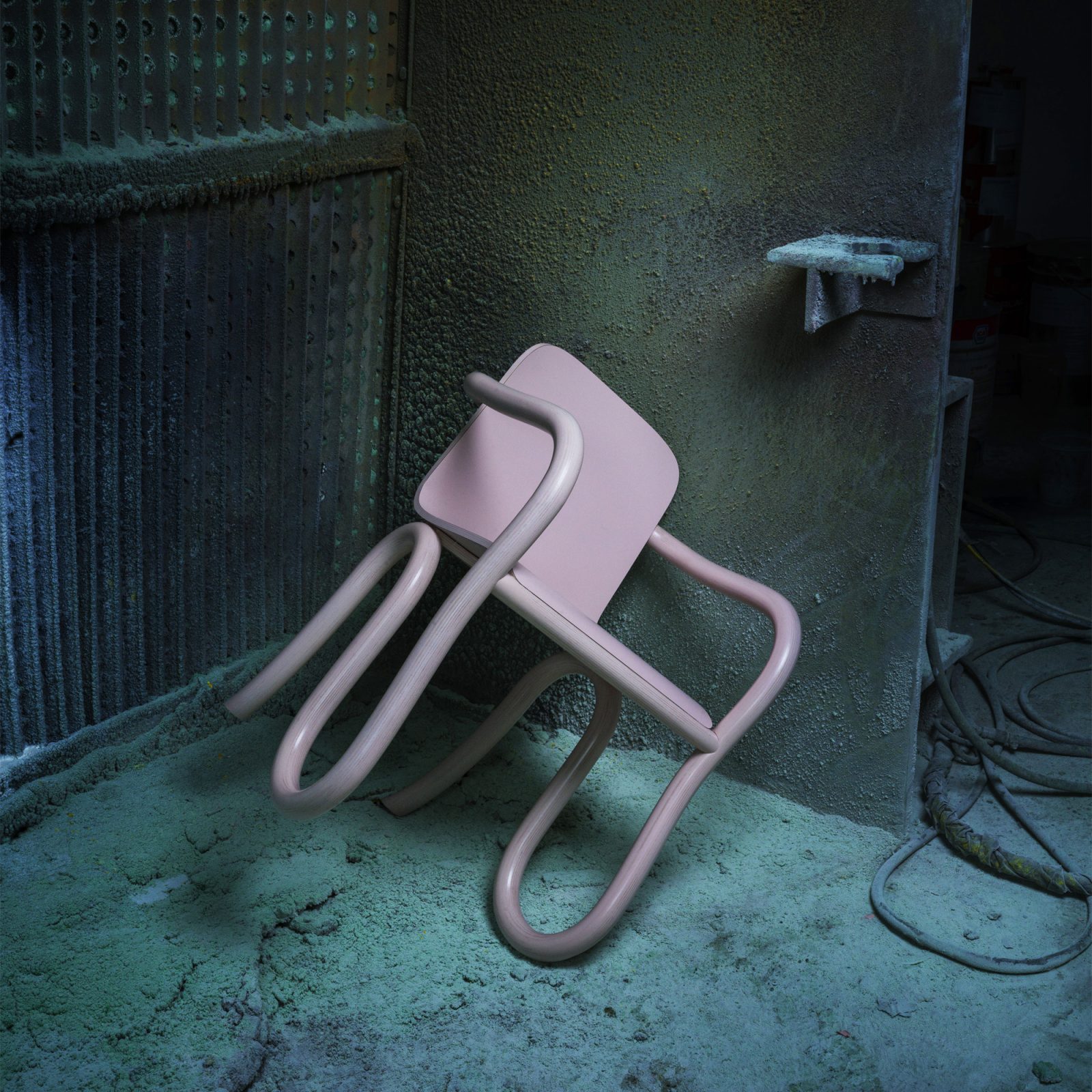 “Kolho is a series of tables and chairs formed of right angles and serpentine forms. It is inspired by Apollo landing and a small town called Kolho in Finland. The serpent represents temptation and chaos which supports the flat plane of reason. The space between Reason and Chaos is that of PLAY. This is the space where our human animal truly shows its greatest self.” — Matthew Day Jackson, artist (Hauser & Wirth)