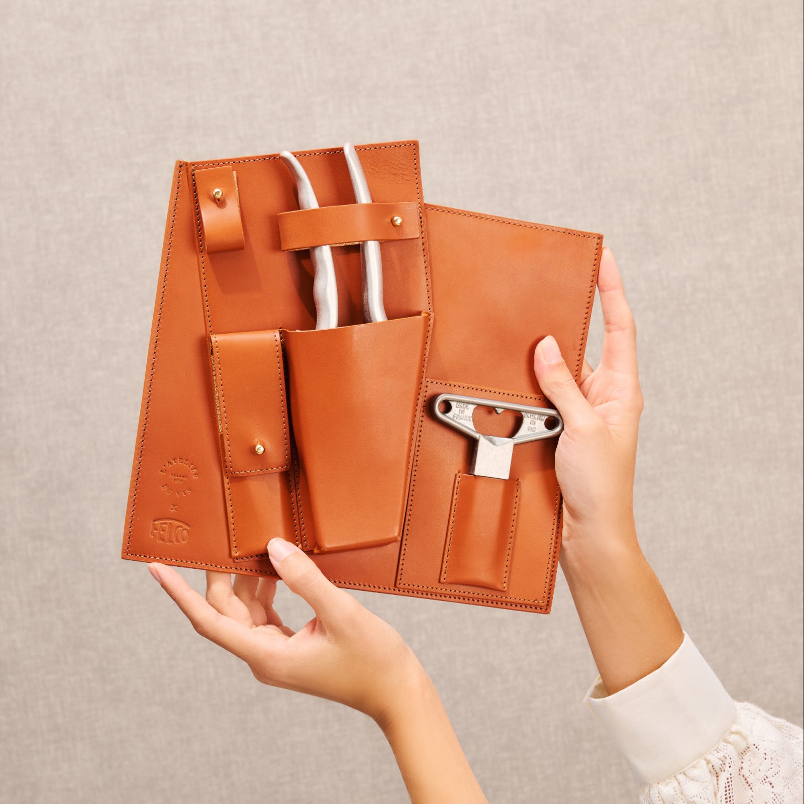 A handsome leather roll in warm saddle-brown, stocked for the happiest kind of double life: a little time in the vines (or the backyard), then straight to the bottle. This collaboration pairs FELCO’s iconic No. 2 pruning shears with L’Atelier du Vin’s Bilame cork puller—two tools for people who like their rituals to feel good in the hand and behave predictably when it counts.