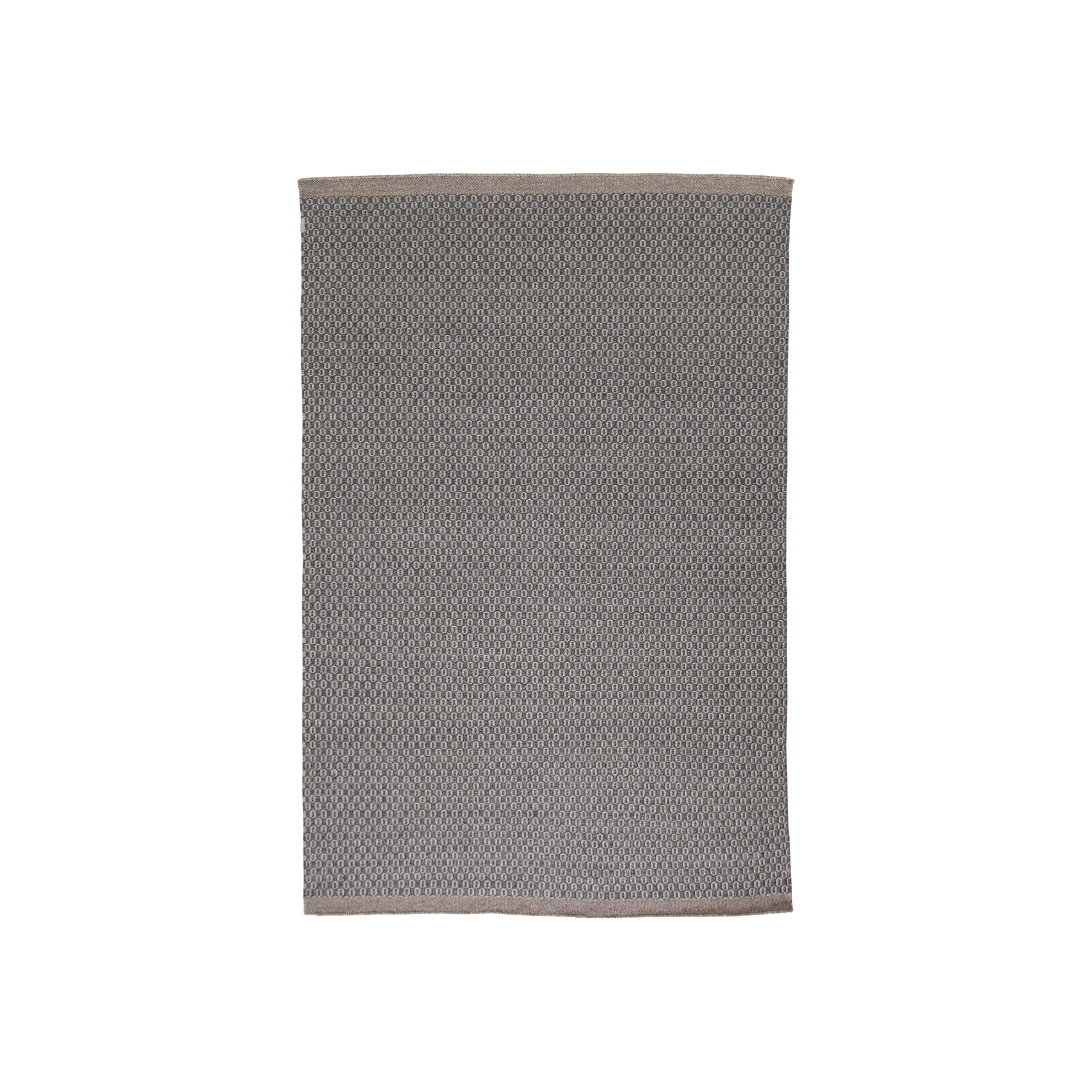 Levante is a flat-woven outdoor rug with a dense, repeating surface built from synthetic yarn. The weave is tight and regular, creating a small-scale pattern that reads evenly across the rug without turning decorative.