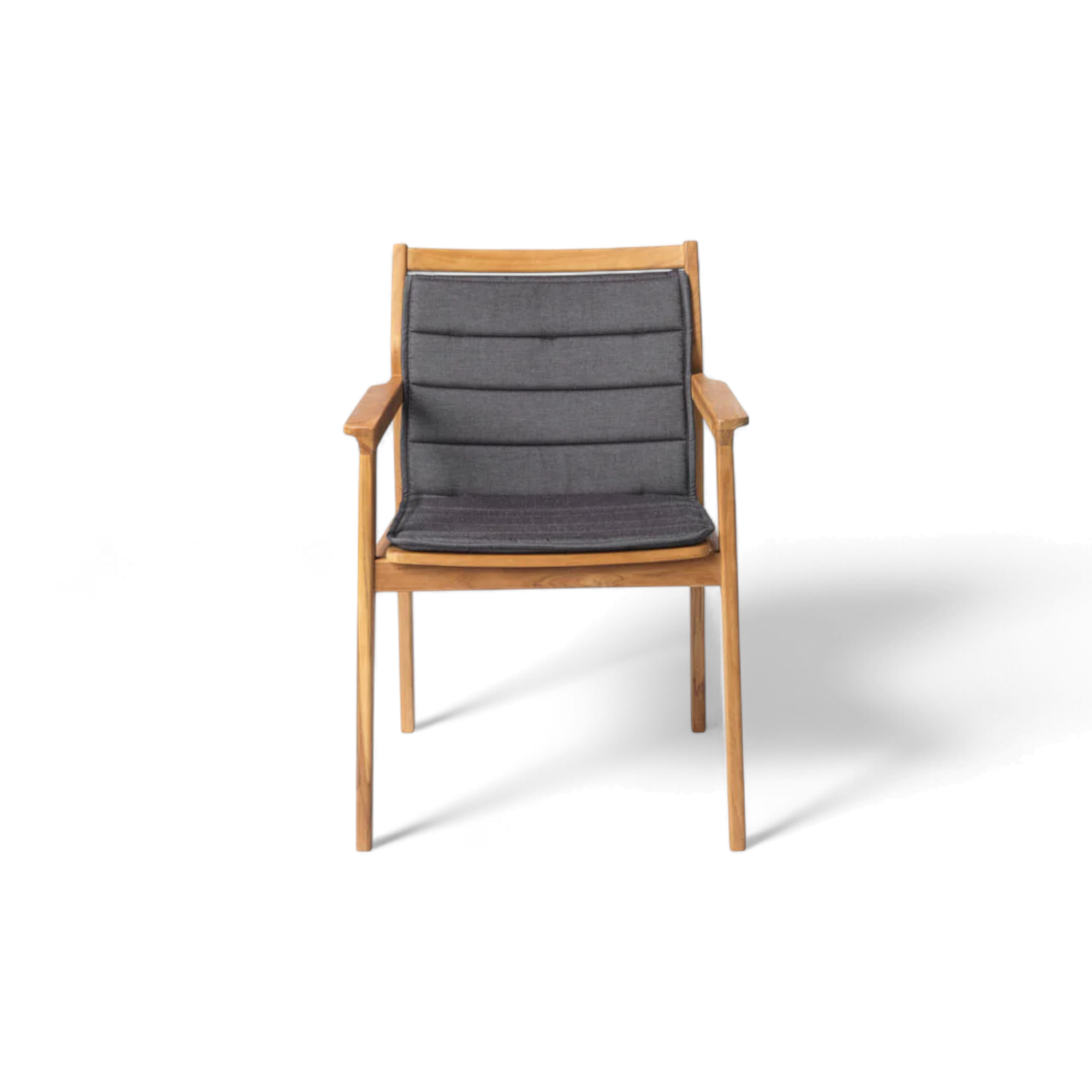 This cushion is made to fit the M1 Sammen garden chair. It’s tailored to sit neatly against the slatted seat and backrest, with fabric straps and buttons that keep it in place without shifting. The cover is made from durable, weather-resistant fabric, and the padding is firm enough to hold its shape through daily use. It adds just the right amount of comfort to the solid teak frame—nothing bulky, nothing overdone. Just a quiet addition that makes staying outside feel a little easier.