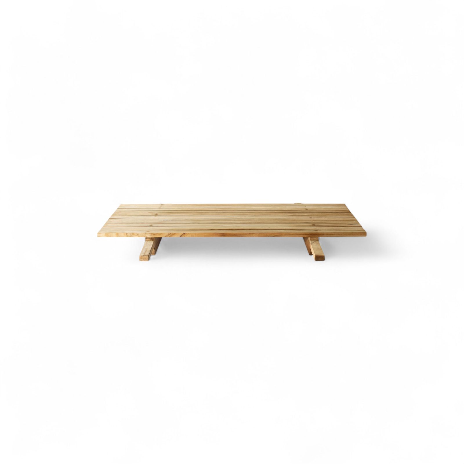 Designed for the M2 and M3 garden tables, the M4 central plate lets you connect two tables into one long surface. It’s made from solid teak with the same slatted design and finish, so everything lines up cleanly—visually and structurally. The leaf slides in securely and adds just the right amount of extra space for larger gatherings. Whether you’re hosting a summer dinner or setting up for a long afternoon outside, it lets the Sammen tables grow with the occasion. You can join two, or keep going as far as you need.