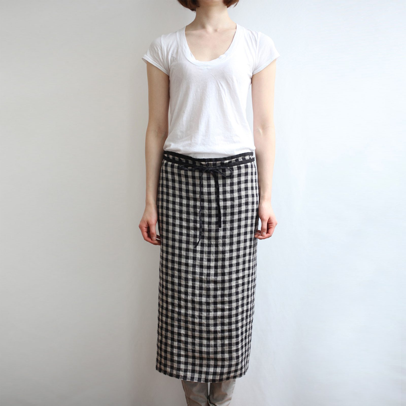 The black-and-ivory check gives it a casual charm, while the stitched red loop at the pocket corner adds a small visual hit that feels just right. Light, breathable, and easy to layer, it’s the kind of apron that quietly becomes a favorite.