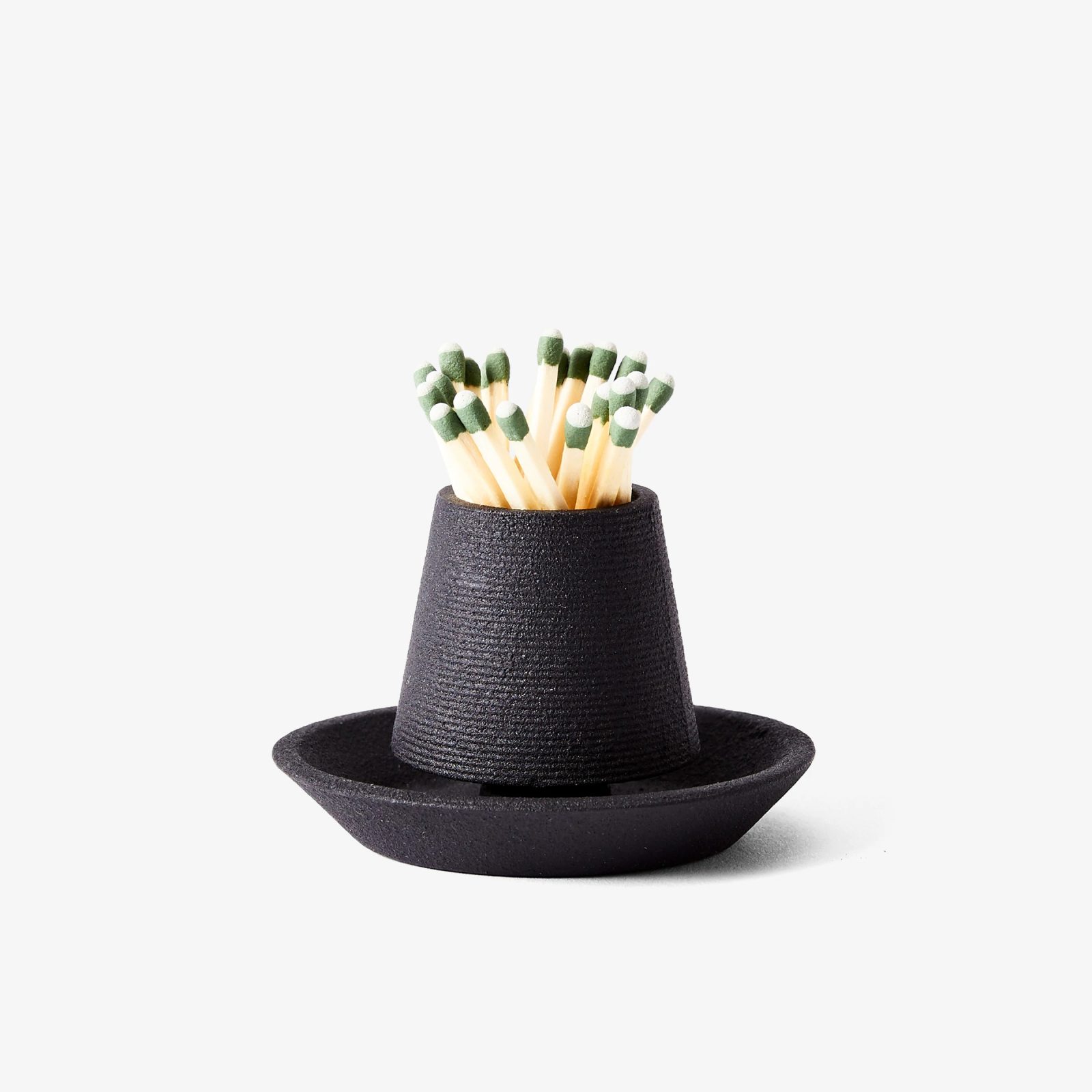 Areaware struck gold with this Josh Owen design. Made from cast iron, this match striker with holder has a beautiful texture reminiscent of coiled rope. The center features a circular pattern that allows the user to easily ignite matches in one smooth motion. At the top, the opening offers storage space for strike-anywhere wooden matches. The base also provides room for used matches, where they can remain until they’re cool enough to safely throw away. Crafted from cast iron, this product is durable and easy to maintain. To clean markings, use a soft cloth and olive oil. Please keep in mind that this match striker with holder works with strike-anywhere matches only.