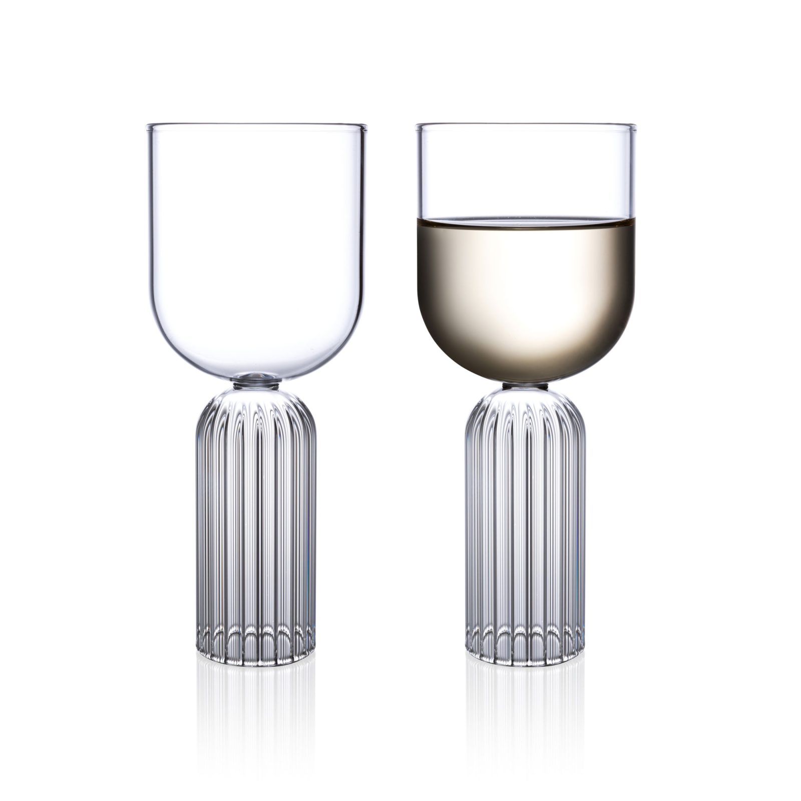 Creative, light, and bold. The May collection pays homage to the month that connects spring with summer. Designed by Felicia Ferrone as an homage to her favorite month, the May range features bold, contemporary stems and vintage-style detailing. The May Medium Glass Set is an excellent choice for white wine, water, fresh juice, or sodas. The handcrafted glasses have a capacity of 8 fl oz, or 250 ml. They both feature fferrone design’s signature interior fluting, created by master glassblowers on the hollow stems without the use of molds. Tougher than their elegant appearance may suggest, the May Medium Glasses are made from dishwasher and microwave-safe borosilicate glass.