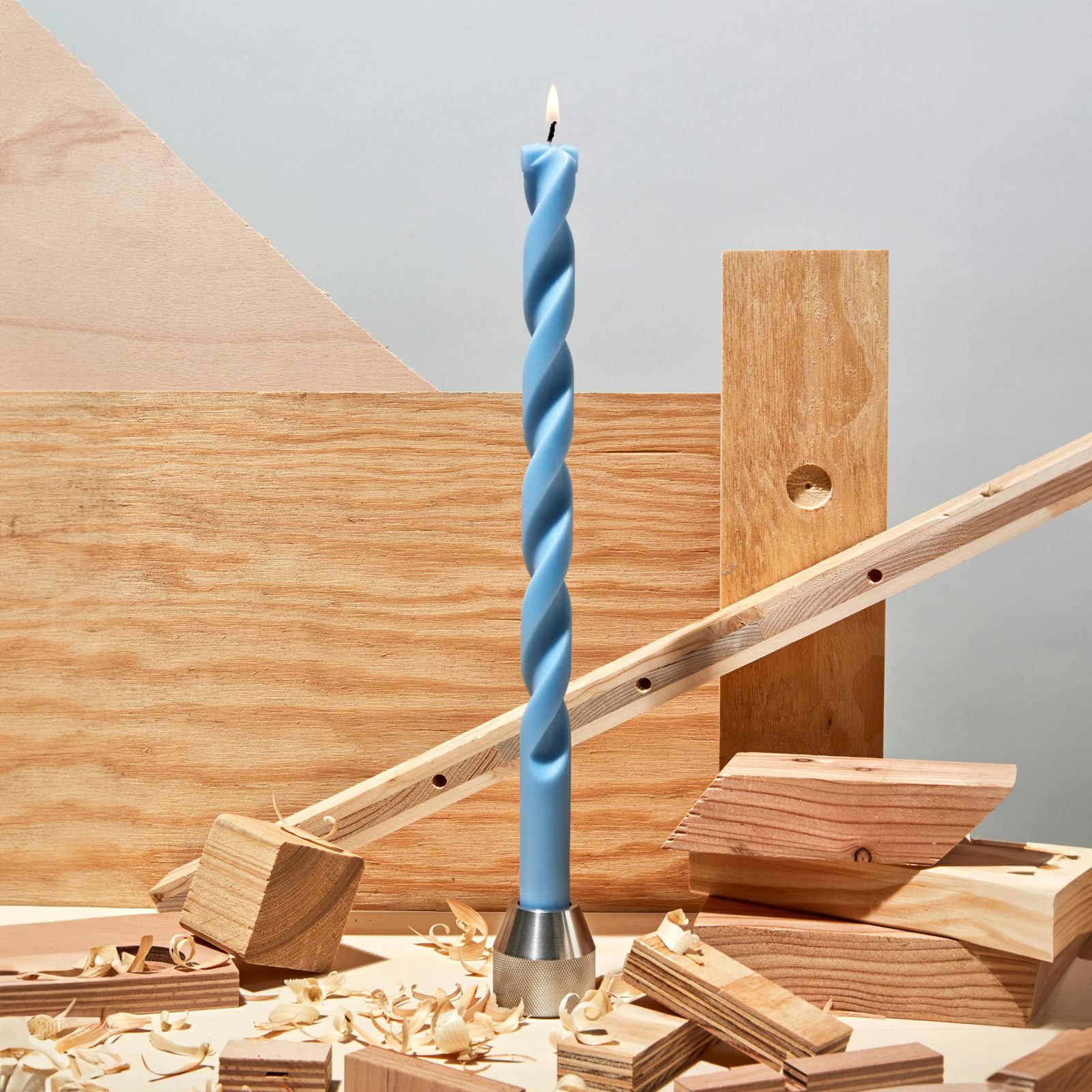 Distinctive and unmistakable, the silhouette of the 54 Celsius Metal Drill Bit Candle elegantly reimagines the eponymous tool as a decorative object. This ingeniously designed candle creates a focal point anywhere with its twisting shape and clean lines. A great choice to add an industrial accent to a room or a dining table, the candle comes in Gray, White and Light Blue versions. All three are made from beeswax and soy wax, burning for around 6-7 hours. Plus, these candles fit standard candle holders perfectly – whether your own or the collection’s Drill Bit candle holder. Each unscented 54 Celsius Metal Drill Bit candle comes packaged in a recyclable and biodegradable gift box.