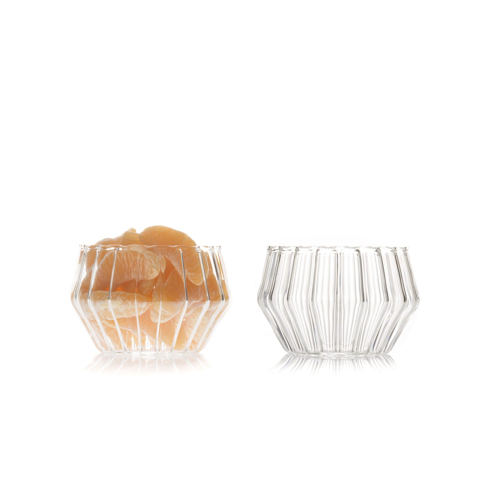 Accompany your favorite drink with a tasty snack, served from an elegant bowl that can complement even the finest wine or whiskey. Part of the Mixed collection designed by Felicia Ferrone, the Mixed Small Bowl features the line’s signature blend of two types of glass. Skillfully handcrafted by master glassblowers, this bowl is durable as it is refined. It’s made from borosilicate glass, which means that you can safely use the bowl in the dishwasher, microwave, and oven. Suitable for both hot and cold applications, the Mixed Small Bowl has a capacity of 8.5 fl oz. Use it alongside the glasses and the carafe from the same range, all available in our shop.