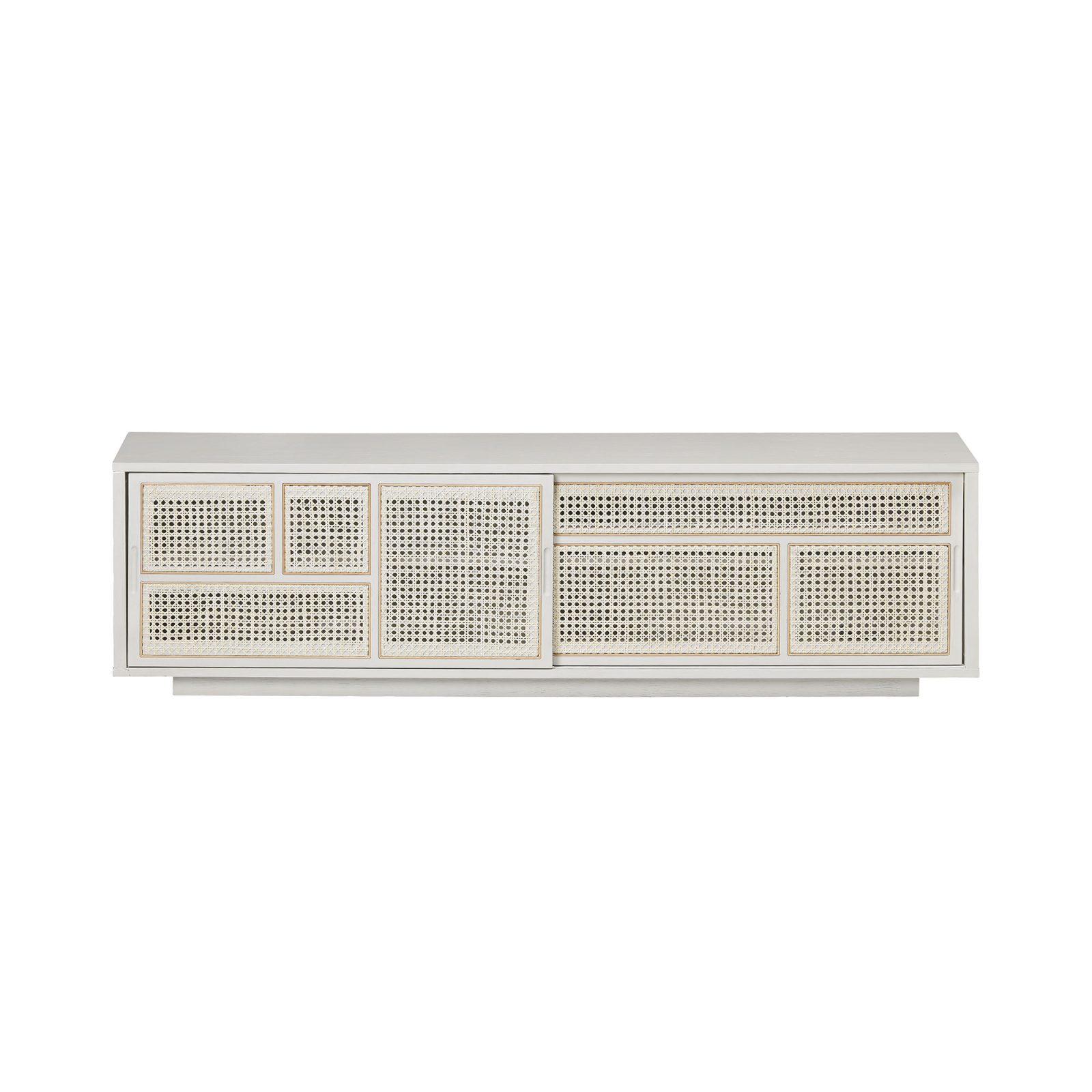 Inspired by the woven cane chairs of Parisian bistros, the Air modern black sideboard keeps lightness and solidity in perfect balance. Designer Mathieu Gustafsson created the series of sideboards and cabinets for renowned brand Design House Stockholm. This version boasts the collection’s signature woven rattan doors that create a graphic pattern. Made from oak veneered MDF with solid oak legs, Air features natural rattan weaving that lets some of the light pass through to the interior. Inside, cut-outs provide an easy way to wire electrical appliances, media devices, or even lighting that can accentuate the semi-transparency of the woven material. The Air modern black sideboard can be used either placed against a wall or as a freestanding piece of furniture.