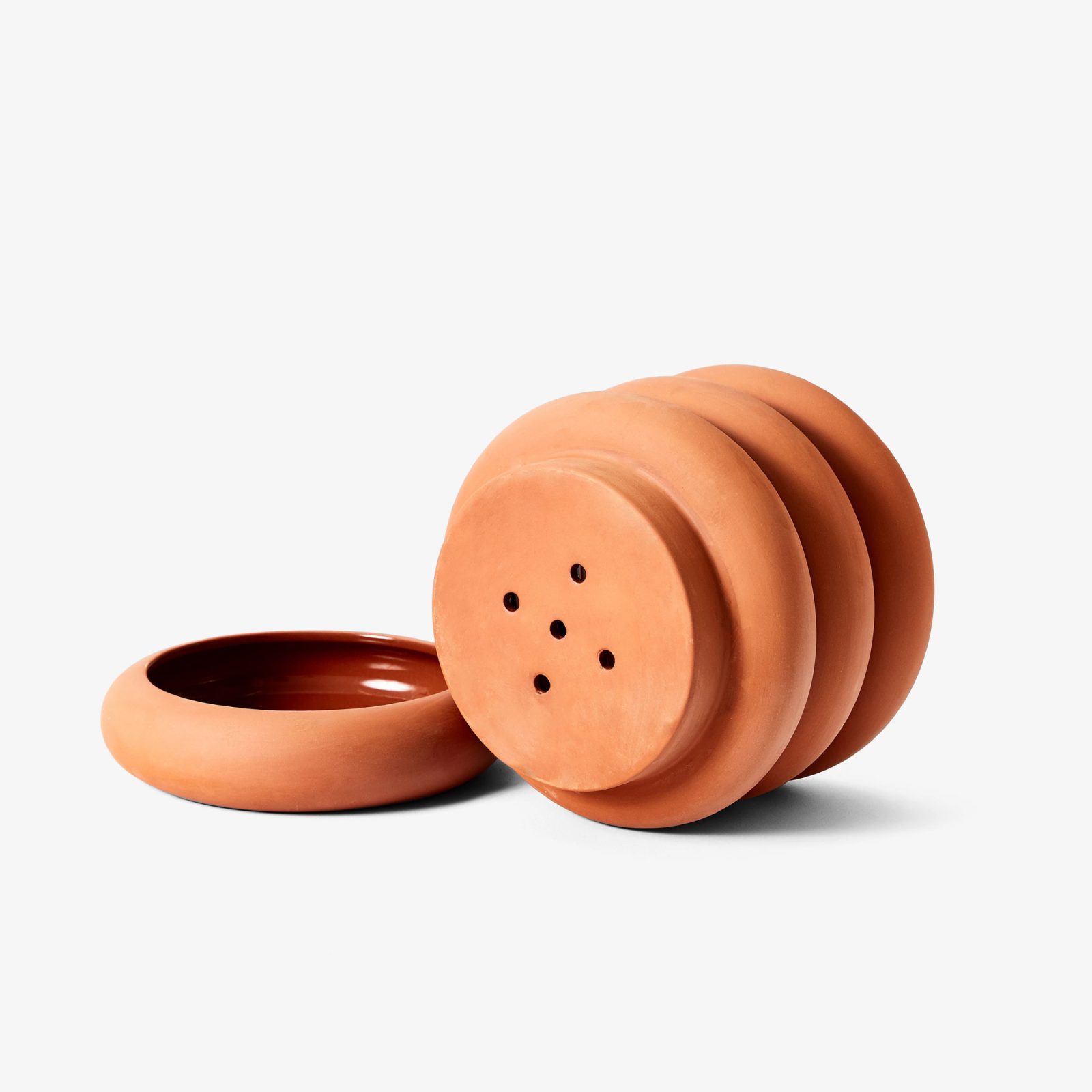 Inspired by high voltage ceramic insulators used on power lines, this modern terracotta planter seamlessly blends industrial and rustic design cues. New York-based studio Chen Chen & Kai Williams designed the Areaware Stacking Planter as a compact and versatile 2-in-1 product. The two circular stoneware elements fit together perfectly with the planter sitting on top of a saucer. The user can easily separate them if needed by simply lifting out the top ring. Made with a matte exterior, the planter has a glossy finish on the interior. Available in two sizes, this modern terracotta planter comes in short and tall versions. Perfect for cacti, succulents, or herbs.