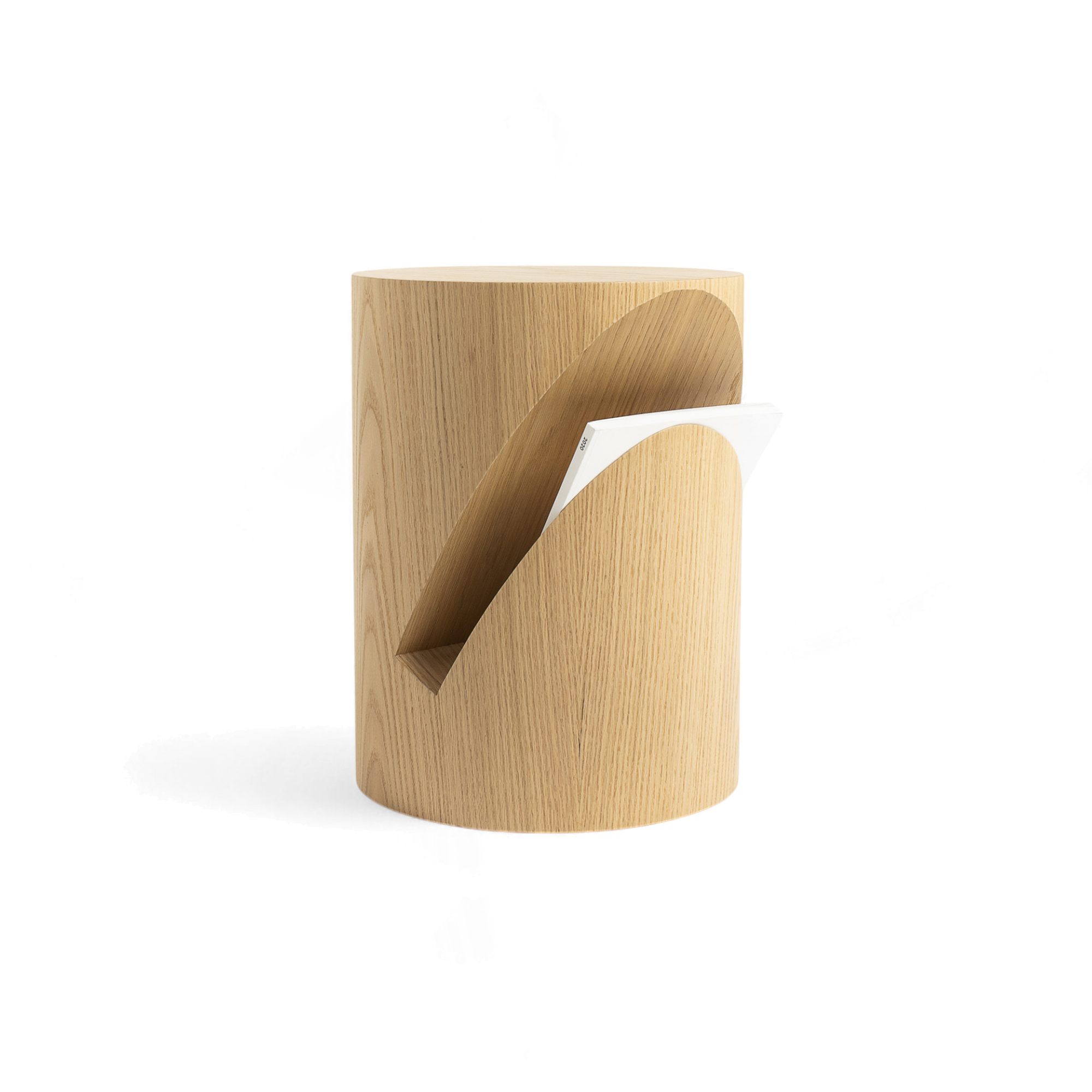 A sculptural piece that does more than sit pretty, the Mola Side Table in Natural Oak or lacquered MDF is as practical as it is intentional. Designed with a hollowed vertical slot, it serves not just as a table but as a discreet magazine or newspaper holder—perfect for keeping your space clean and considered. The cylindrical shape, wrapped in solid oak veneer, showcases the grain variations and tonal shifts that make each piece one of a kind. Whether placed beside a sofa or next to the bed, this wood cylinder side table with magazine holder brings a tactile, organic quality to any room.
