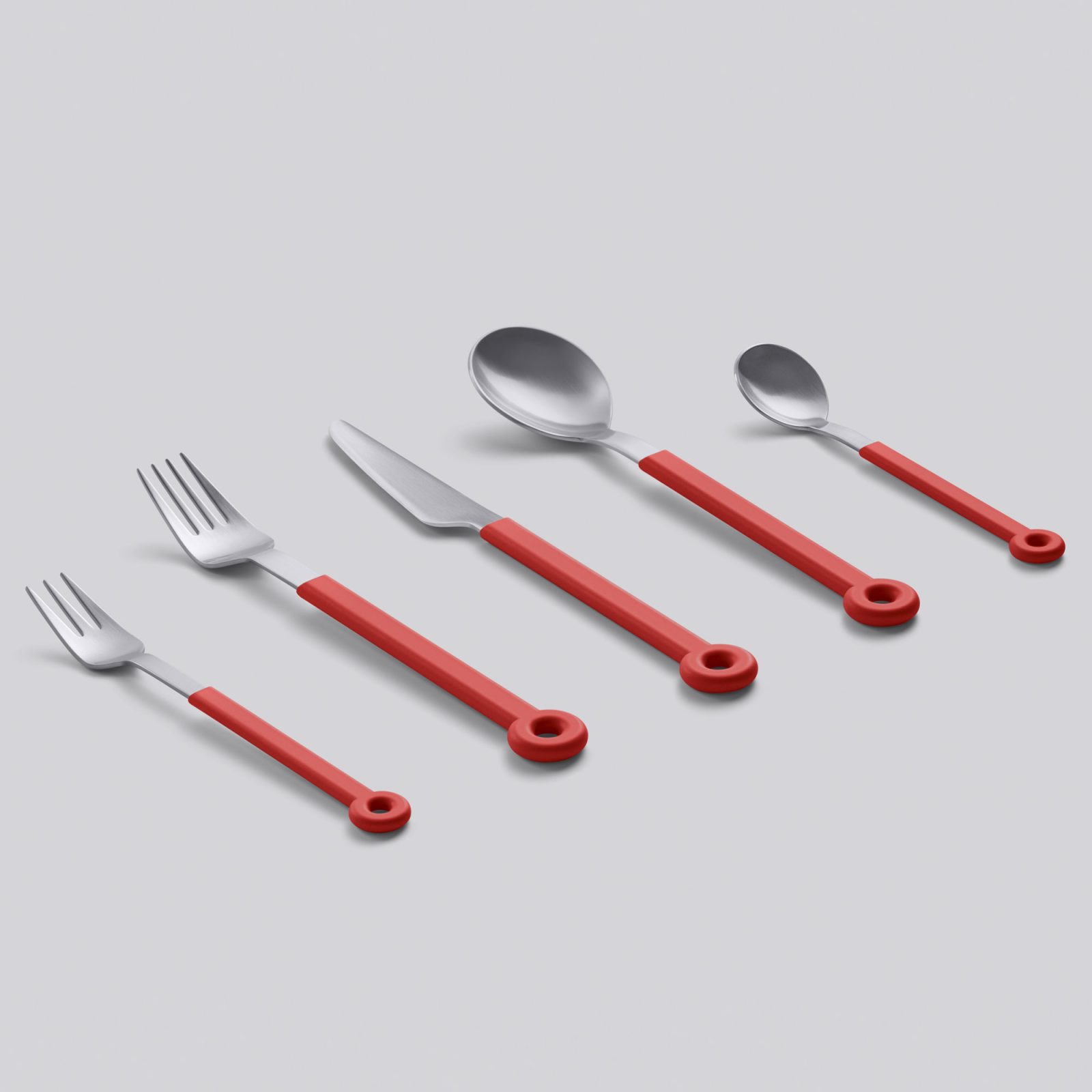 Over 1,000,000 units sold worldwide. Included in the permanent collection at MoMA only a few years after launch. The Mono Ring flatware series has made history. Now you can have it at your dinner table in a reinterpreted design that pays homage to the original and complements it with state-of-the-art technology. The Mono Ring Flatware 5-Piece comes with a tablespoon, fork, knife, teaspoon, and dessert fork. Featuring stainless steel crafted using a 30-step process and an injection molded handle with glass spheres for perfectly balanced feel, the flatware blends iconic style, premium quality, and durability. Complete this set with the table stand in anthracite to showcase the flatware in an elegant way.
