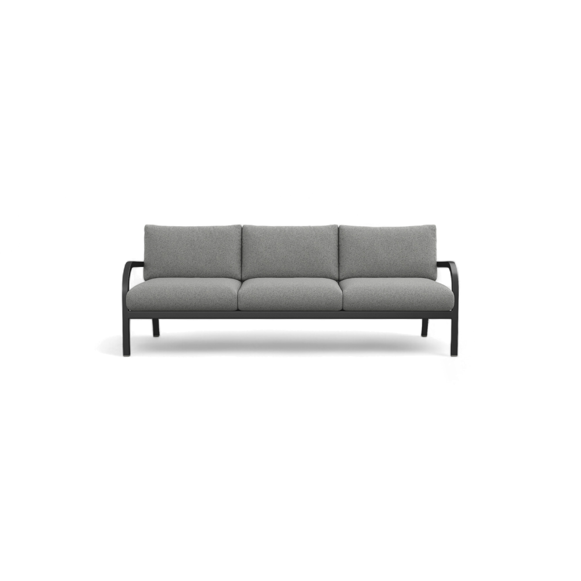 Jasper Morrison stretches Emeco’s wartime classic to a roomy three-seater while keeping the Hanover-made, recycled-aluminum skeleton. The deep charcoal frame is hand-welded, heat-aged for strength, then cured at 400 °F for a matte skin that shrugs off scratches. Seat and back cushions snap on with hidden marine-grade fasteners and come in indoor leathers, easy-clean fabrics, or Sunbrella Heritage for decks and docks. Pop them off in seconds when a storm rolls through; Velcro tabs make storage painless.