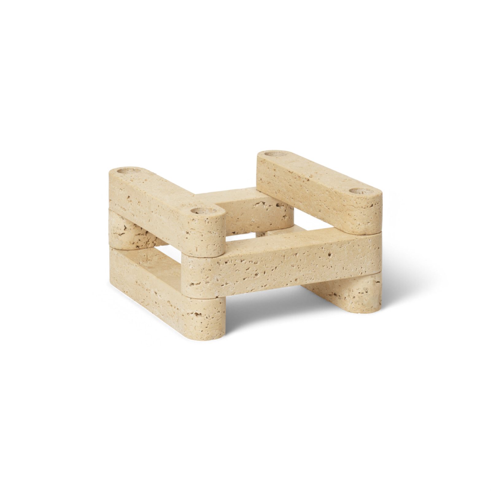 There’s something incredibly satisfying about building something with your own hands. The Newel travertine candle holder offers that opportunity on a smaller scale, transforming the classic candlestick into a flexible sculpture. Inspired by Can Lis, the Mallorcan residence of Danish architect Jørn Utzon, Newel references a specific element of the iconic architectural design: its brick walls. Comprising six travertine building blocks, the modular candle holder set allows you to create your own compositions with ease. From tall to linear or circular structures, the design opens up a wide range of assembly options. Alternatively, you can use some of the elements separately to display two candles each. The Newel Modular Candle Holder Set comes with six travertine units that boast eye-catching textures and a light natural color.