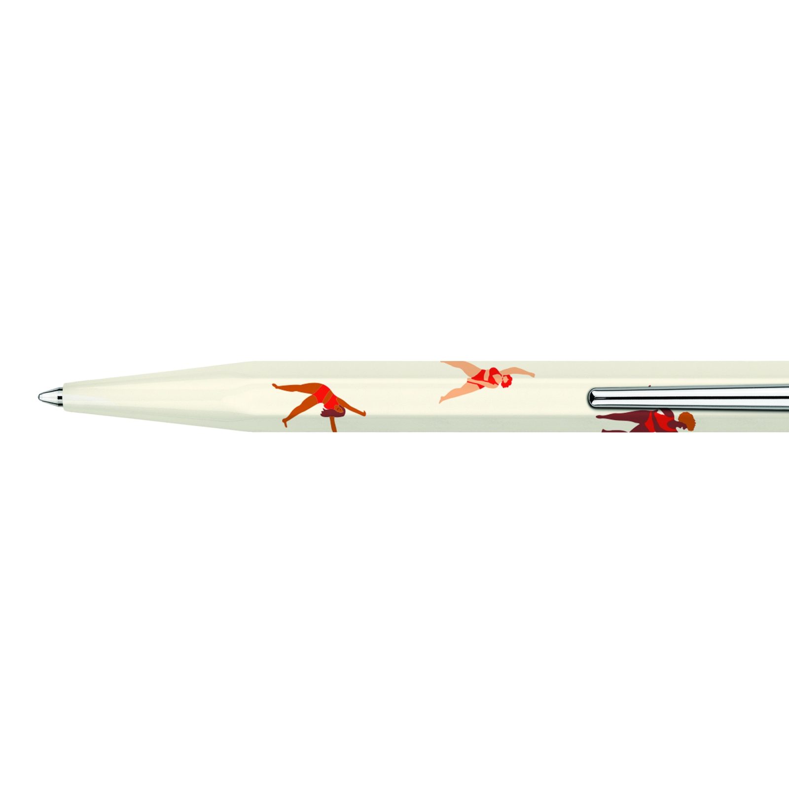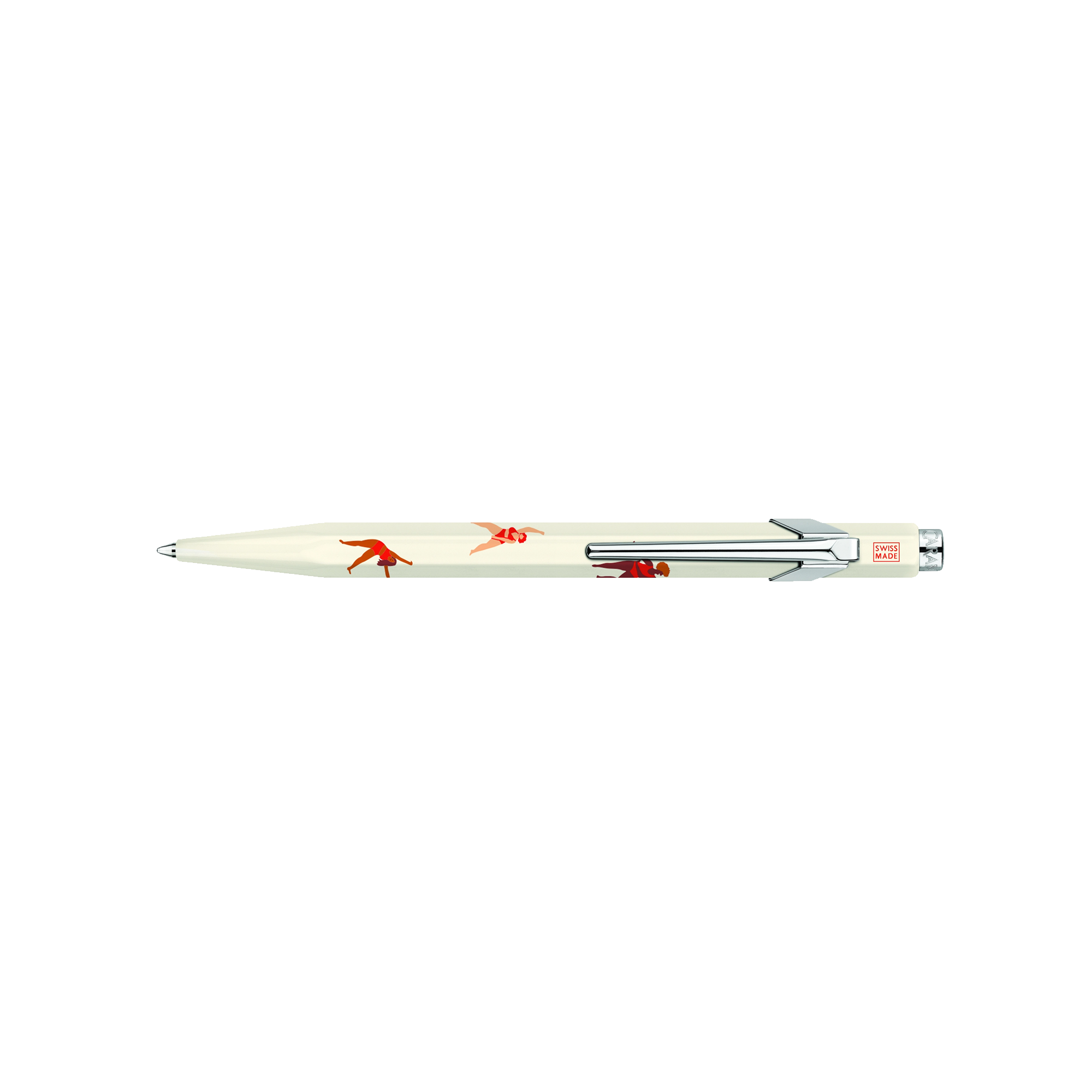 This special edition of the Caran d’Ache 849 pairs the Swiss pen-maker with British illustrator Nina Cosford, whose loose figures and confident line work show up across the light cream aluminum body. The drawings feel quick and lively, like they were sketched in one go, then carried onto the pen without losing that energy.