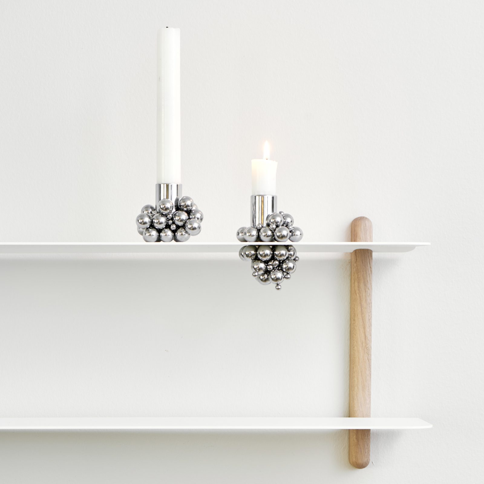 Display books, vases with flowers, artworks and decorative objects in style with the Nivo shelving system from Gejst. Created by Berlin-based design firm Böttcher & Kayser, this shelving unit offers an elegant solution to organize things and keep a room clutter-free. The minimalist design pairs rounded wood supports with thin metal shelves. The timber poles have cuts that hold the shelves in place without any visible screws. Crafted from steel and solid wood, the Nivo shelving system comes in either oak or ash, with black or natural finishes and with black or white shelves. The design also comes in a wide range of sizes, to suit any room and need.