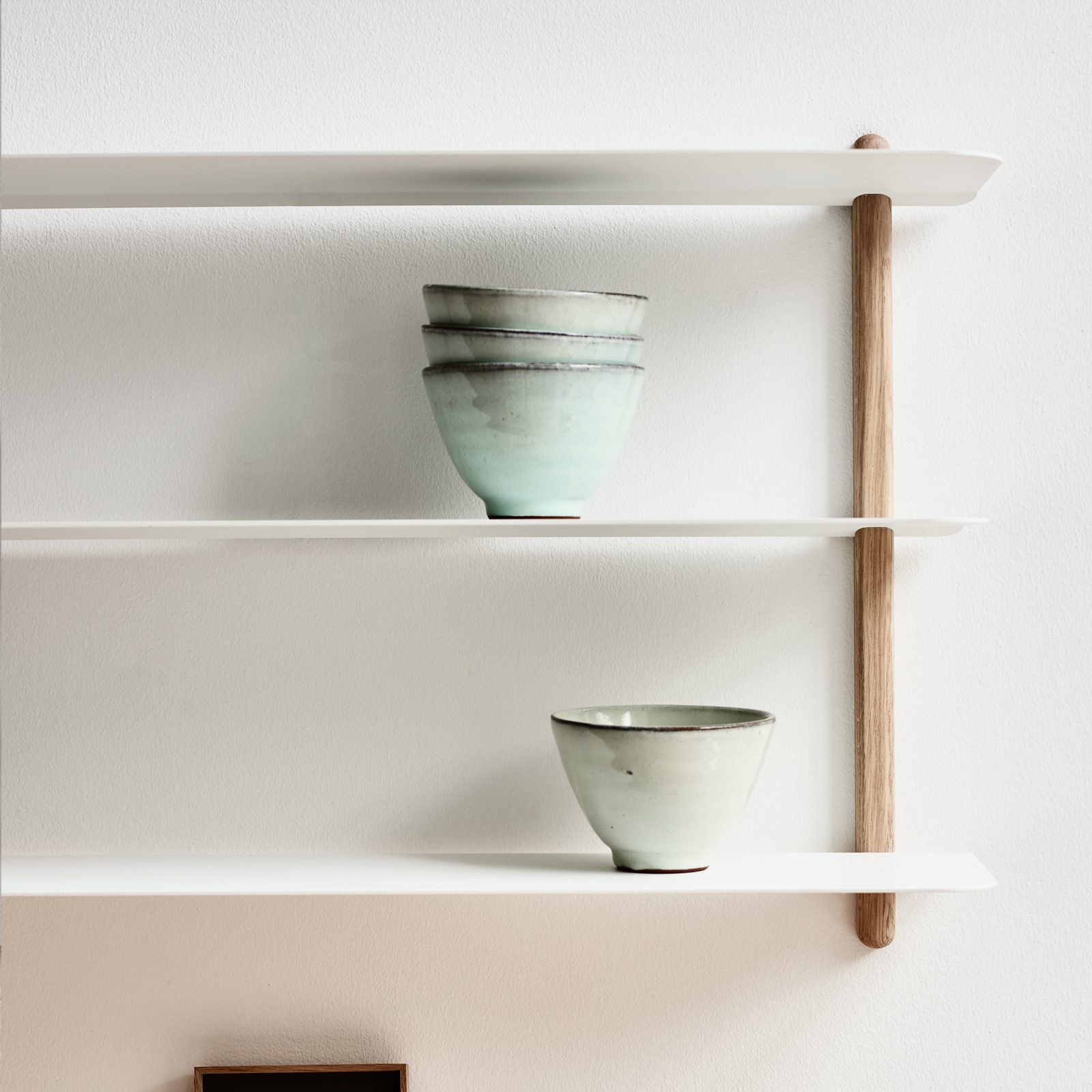 Display books, vases with flowers, artworks and decorative objects in style with the Nivo shelving system from Gejst. Created by Berlin-based design firm Böttcher & Kayser, this shelving unit offers an elegant solution to organize things and keep a room clutter-free. The minimalist design pairs rounded wood supports with thin metal shelves. The timber poles have cuts that hold the shelves in place without any visible screws. Crafted from steel and solid wood, the Nivo shelving system comes in either oak or ash, with black or natural finishes and with black or white shelves. The design also comes in a wide range of sizes, to suit any room and need.