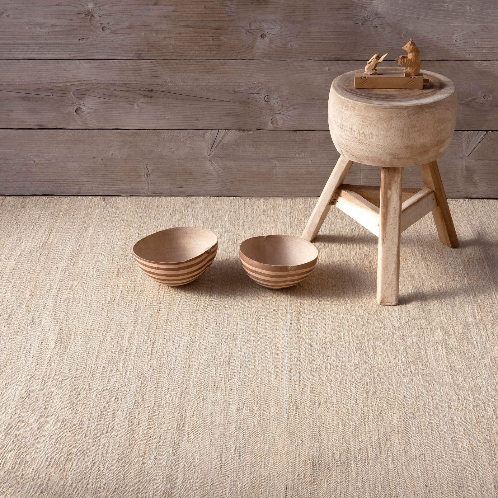 A simple and monochromatic style that reflects the laborious manual art of weaving. The defining characteristic of this collection is the irregular finish, a little worn, which is achieved through the use of traditional handmade processes. Hailing from the indigenous sheep of Afghanistan, Ghazni is the fiber derived from Afghan wool, characterized by reaching lengths of 30cm. Due to this exceptional length and a thin, less-wavy structure, the fiber provides great resistance and special softness. Hand-spun by women in Peshawar, Pakistan, the fiber retains certain irregularities that will be enriched by the dyeing process and therefore be reflected in the final piece. Nomad is available in four colors and is, in its simplicity, a tribute to the beauty of craftsmanship.