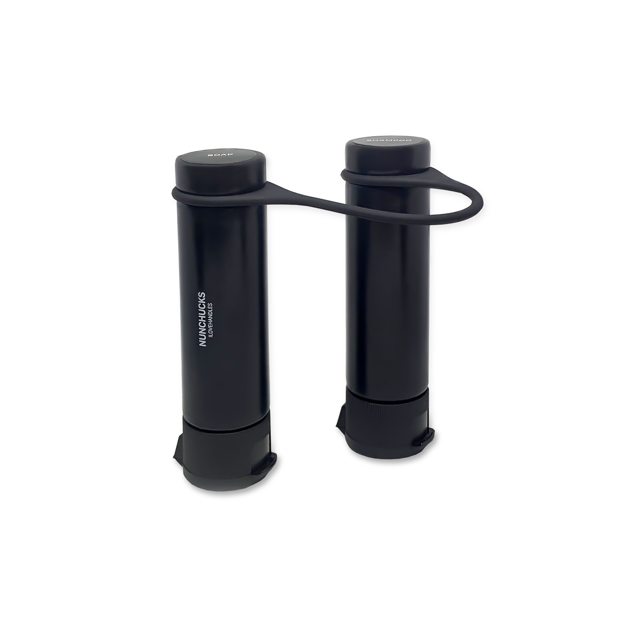 Nunchucks rethink the travel bottle in one very simple way: they hang. Joined by a flexible silicone loop, the two bottles can be draped over a shower handle, hook, or towel bar, which makes them especially useful in hotel bathrooms, gym lockers, campsites, or anywhere counter space is limited and vaguely questionable. When suspended, the caps point downward, so shampoo, conditioner, soap, or lotion stays where you actually need it instead of sliding stubbornly to the bottom.