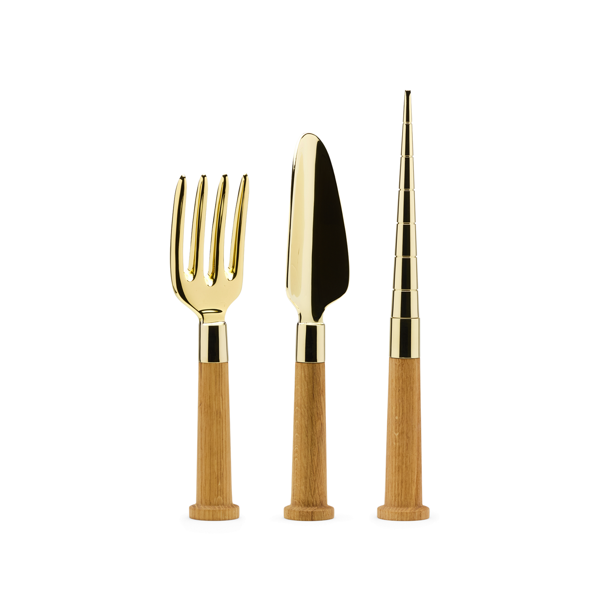 The set includes a planting stick, a hand fork, and a hand shovel. Each one is shaped for simple, regular plant care—repotting, spacing, loosening soil, working around roots. The handling is straightforward, and the proportions make sense for indoor pots and smaller garden spaces.