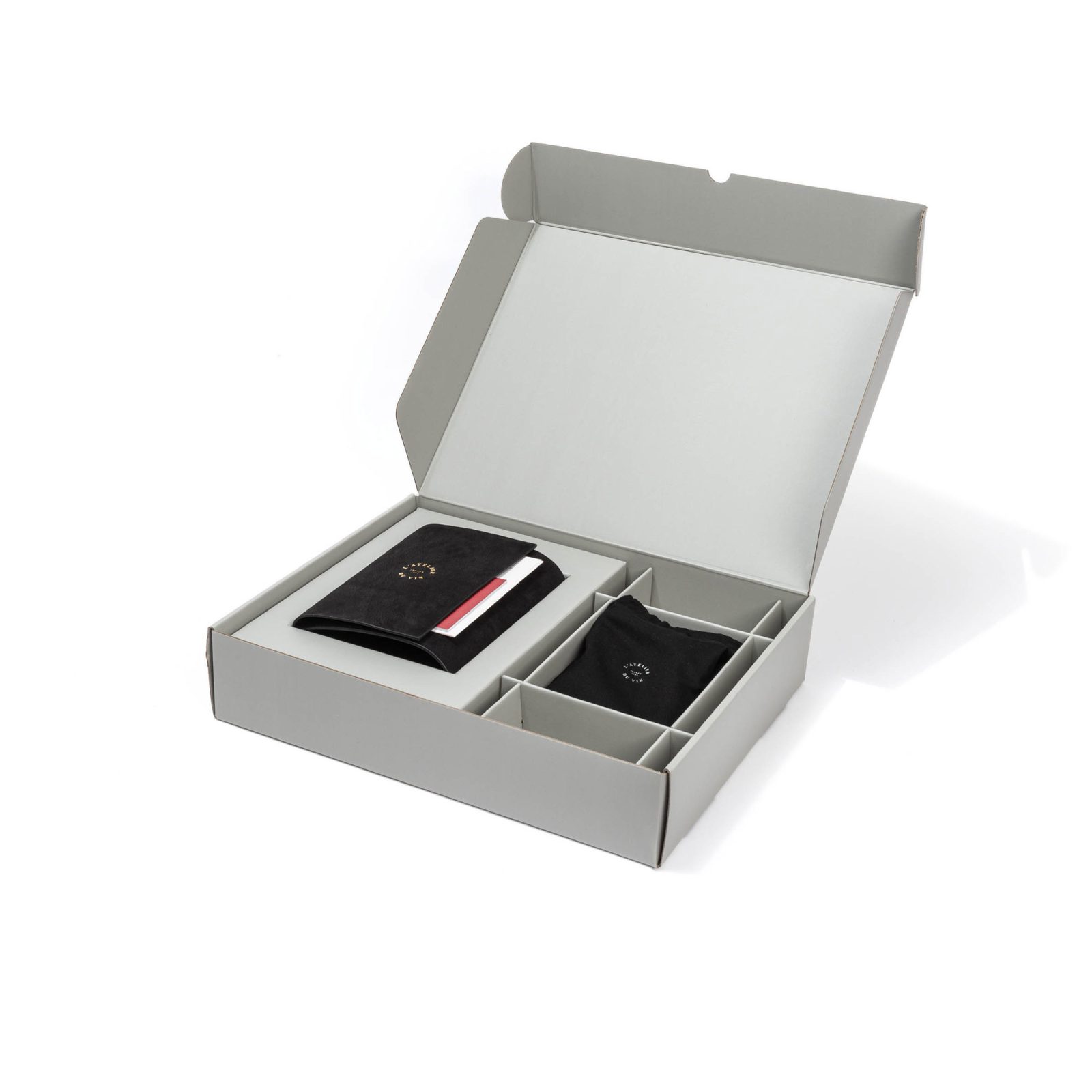 Gold corkscrew is usually a party trick; here it’s a working tool, dressed properly and packed for travel. The Nomad folio is real leather on the outside—matte black, meant to pick up patina—and a smooth technical leather on the inside that’s easier to live with around wine. It opens like a book and holds the corkscrew tight, with that satisfying “everything stays put” feeling when you close it again.
