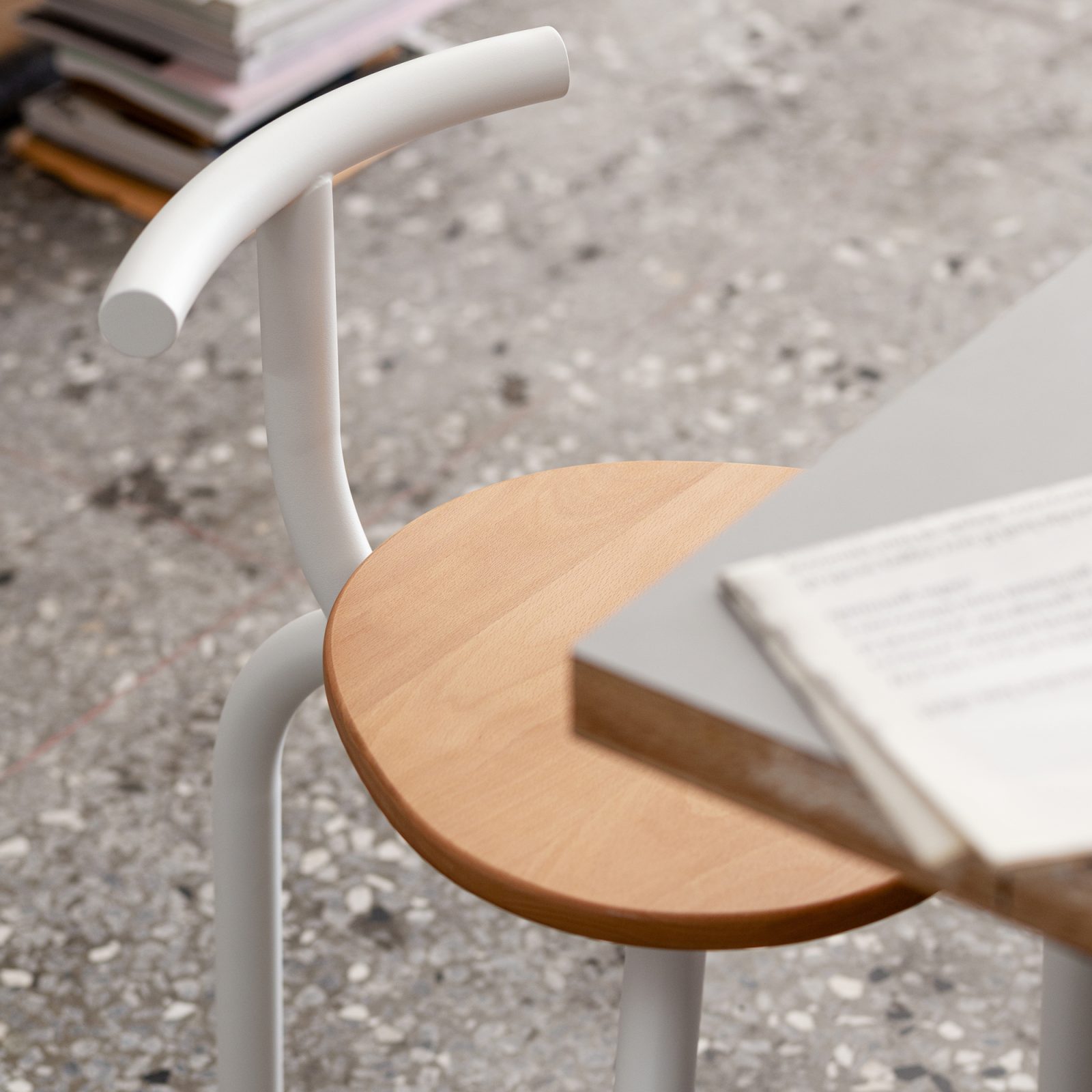 Designed by Berlin-based Hayo Gebauer, the Esaila Ogle chair marries inventive design and elegant minimalism. The chair features a distinctive silhouette with three rounded legs and a low, compact backrest that supports the lower back. At the same time, the backrest offers the user different seating options. The backrest also doubles as a convenient handle, providing an easy and comfortable way to move the chair from one place to another. Made from beech wood and powder-coated steel, the Ogle chair suits both residential and commercial spaces. It’s available in black and white, to complement any existing color schemes.