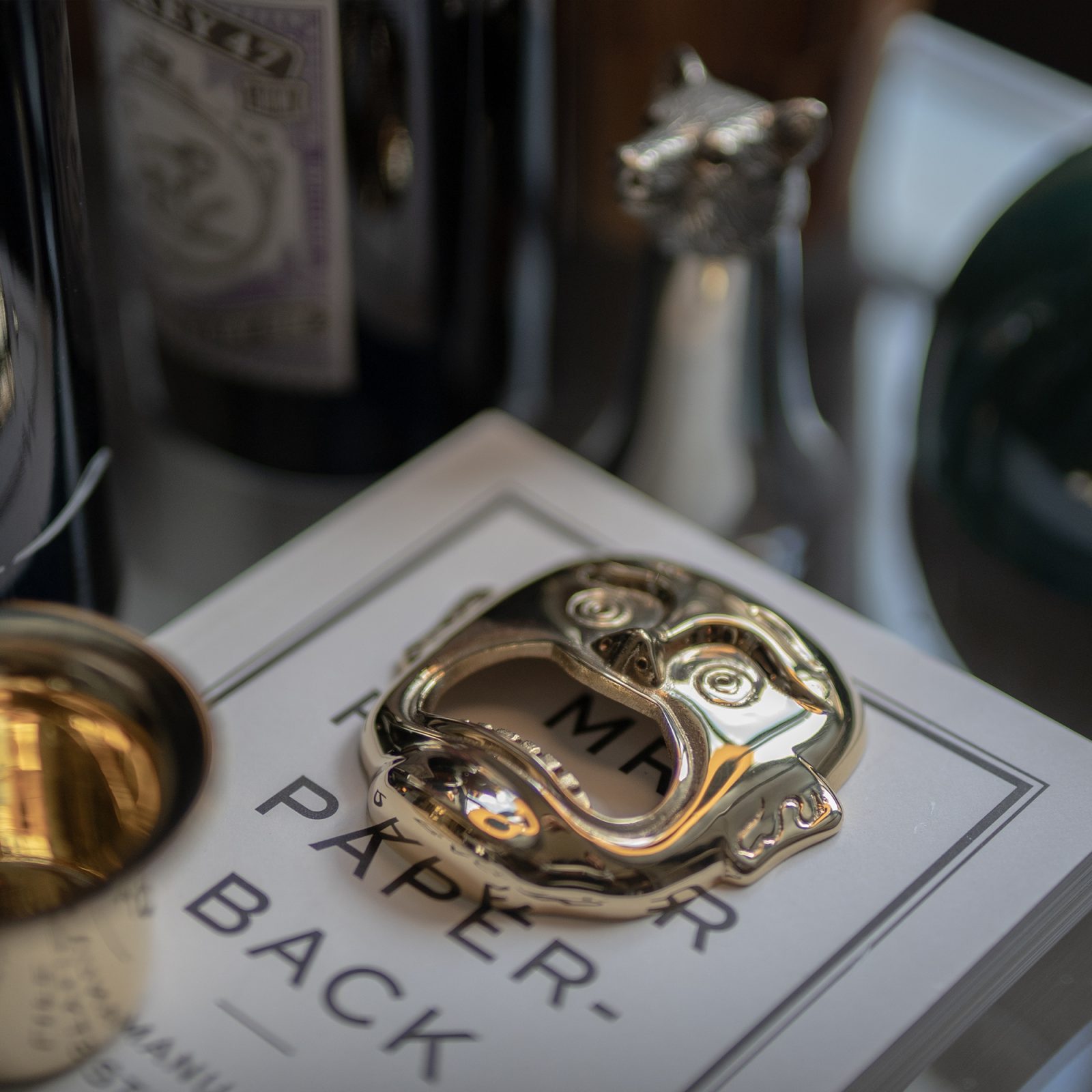 A creative design, the Open Sesame bottle opener from the Skultuna collection brings more fun to gatherings with friends, whether at home, traveling, or camping. Designed by writer, artist and product designer Eric Ericson, Open Sesame recreates a mask-like human face from sand cast brass. The character’s open mouth provides an easy and convenient way to open bottles, while the durable material and quality build ensure that this product is long-lasting. Finished with a polished surface, the Open Sesame bottle opener shines with a golden color. Over time and with use, every bottle opener will develop a unique patina and texture.