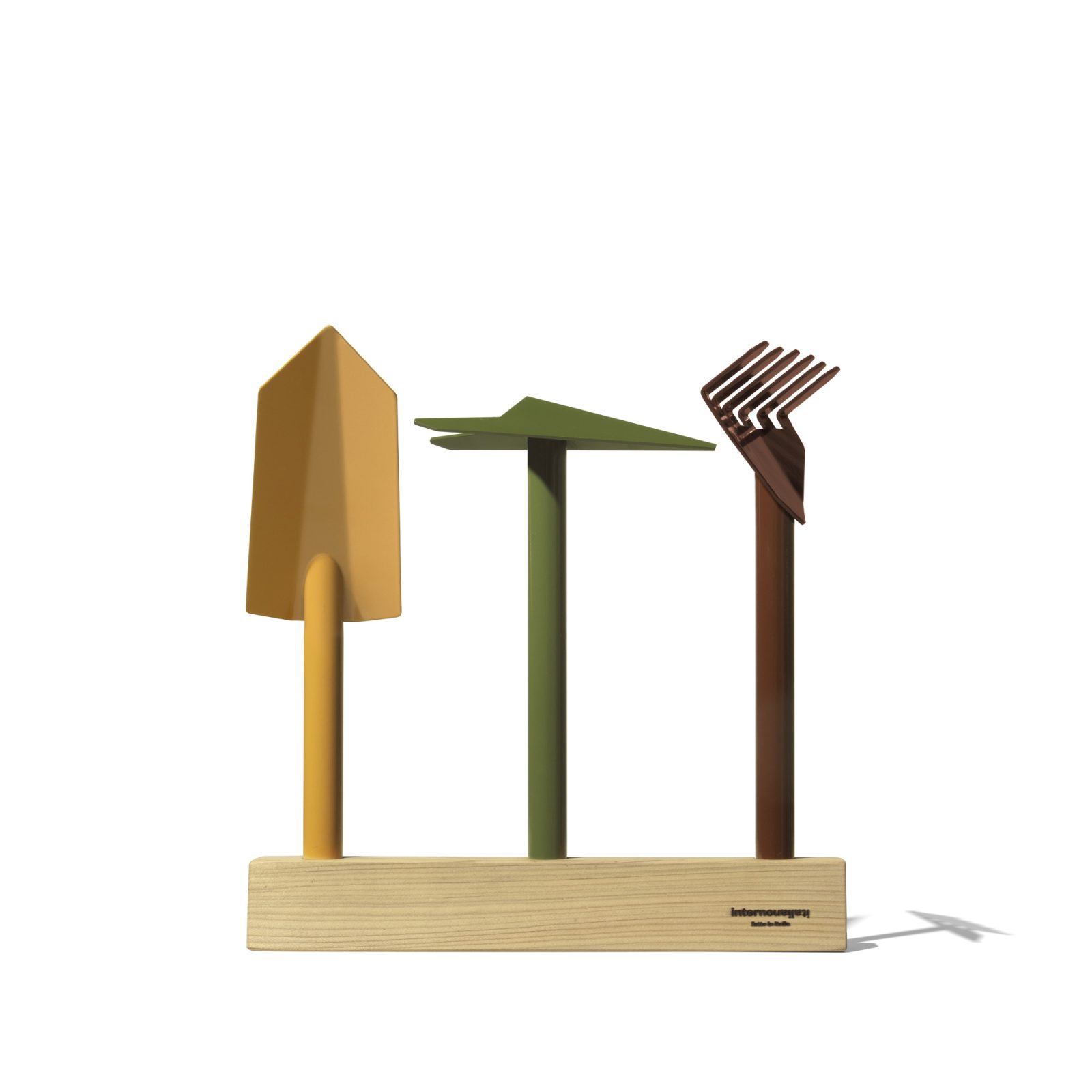 Orte is a gardening tool set designed by Giulio Iacchetti, the set consists in a metal hoe, a rake and a shovel. The tool set comes with a wooden base where they can be stored and be ready to use. The names for all of InternoItaliano’s objects pay a tribute to some not well known Italians towns and villages, Orte is a small town near Rome.