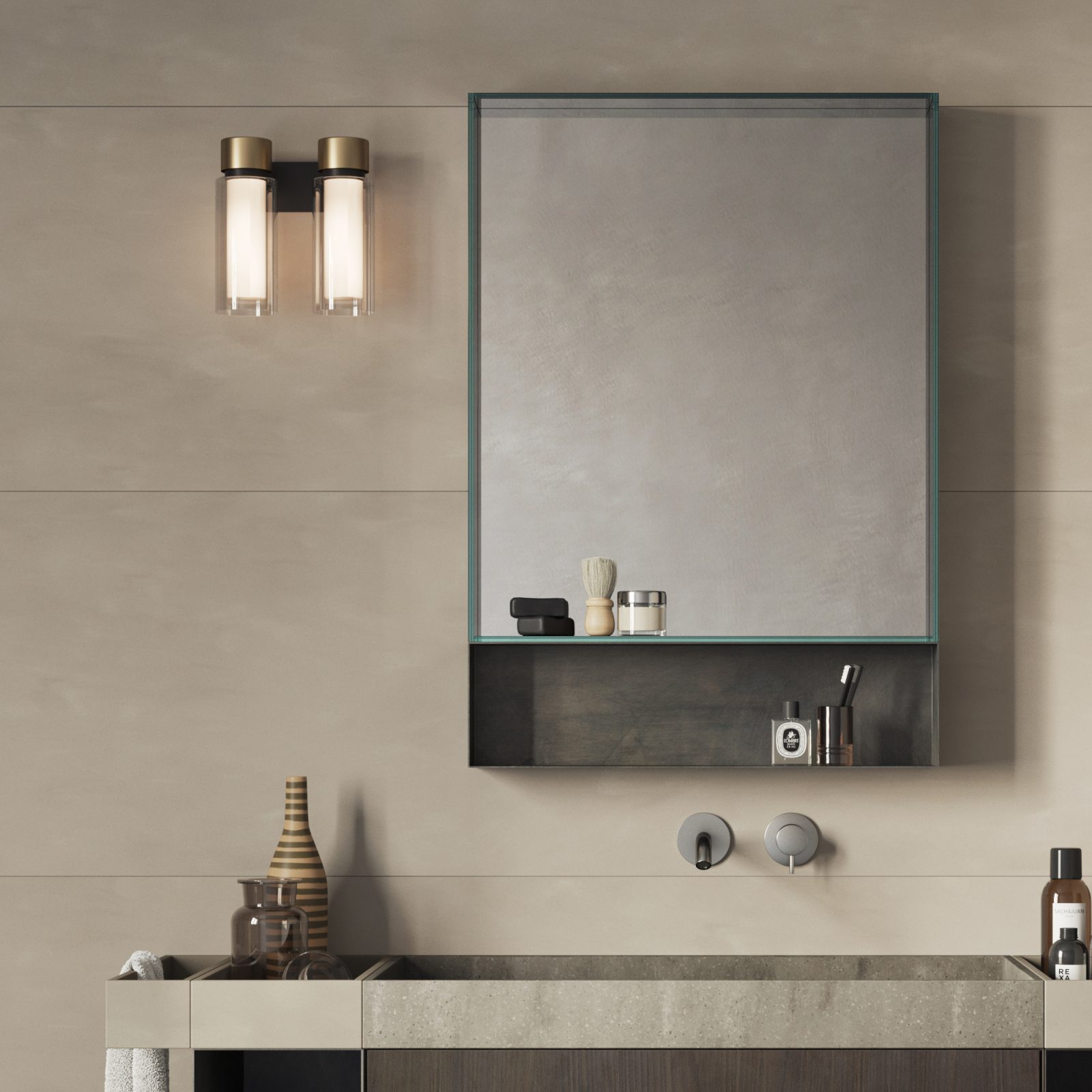 Family of lamps with a rational design enriched by precious metallic details and double-wall cylindrical diffusers that give a fascinating