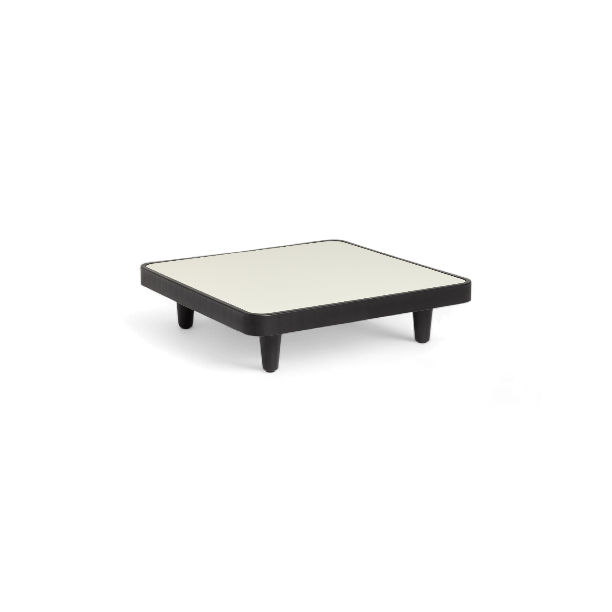 Low and solid, the Paletti Table slots into Fatboy’s pallet-inspired lounge system like the missing tile in a puzzle. The top is a single sheet of powder-coated aluminum—smooth enough for coffee cups, tough enough for planters—resting on a recycled-polypropylene frame that matches the seating modules. Clip it between two Paletti seats and it becomes a shared table; set it at one end and you’ve got a chaise-style perch for books, towels, or a tray of drinks.