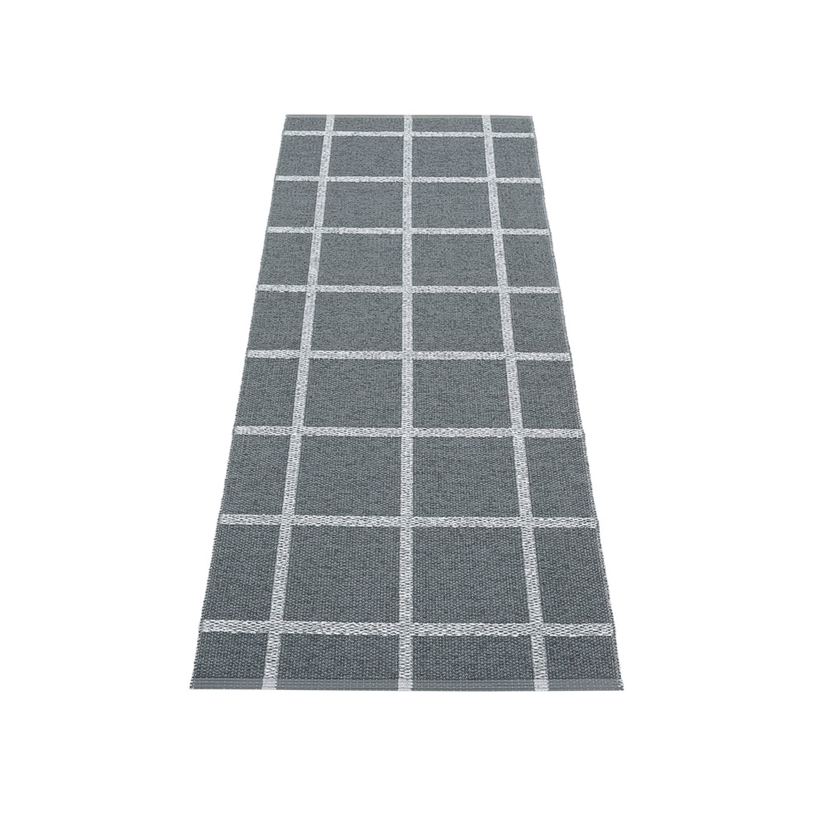 Discover ADA, a rug that transforms traditional design with its chequered pattern, reminiscent of classic wallpaper styles. Yet, ADA goes beyond conventional aesthetics. It challenges the norms of weaving with an advanced approach, creating an innovative and captivating design. Pappelina’s skilled weavers have tirelessly innovated and refined their techniques to craft ADA, blending two distinct weaving methods that intersect both vertically and horizontally to create a stunning visual impact. This breakthrough in weaving technology not only enhances the rug’s appearance but also its functionality. ADA stands out as a non-absorbent, hygienic rug that resists dust accumulation, making it an excellent choice for allergy sufferers. Explore the unique charm and sophisticated appeal of the Pappelina plastic rug ADA in Granit color, a piece that redefines spaces with its depth and intricacy.