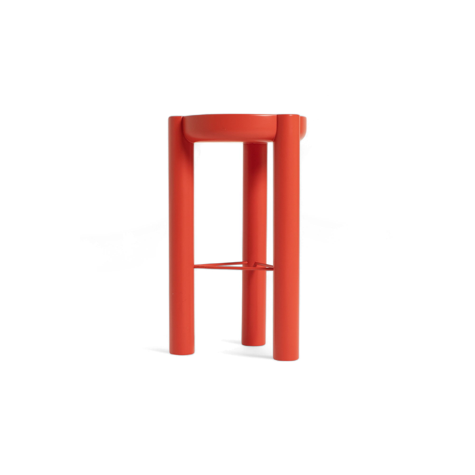 Simple geometry, soft edges, and a tone that’s anything but shy—Pillar is a bar stool that doesn’t try too hard to stand out, yet does. The cylindrical legs and curved seat offer a clean, architectural presence, while a subtle metal joinery detail gives it just enough contrast. Use it by the counter, at a kitchen island, or anywhere that could use a sculptural seat with some personality.