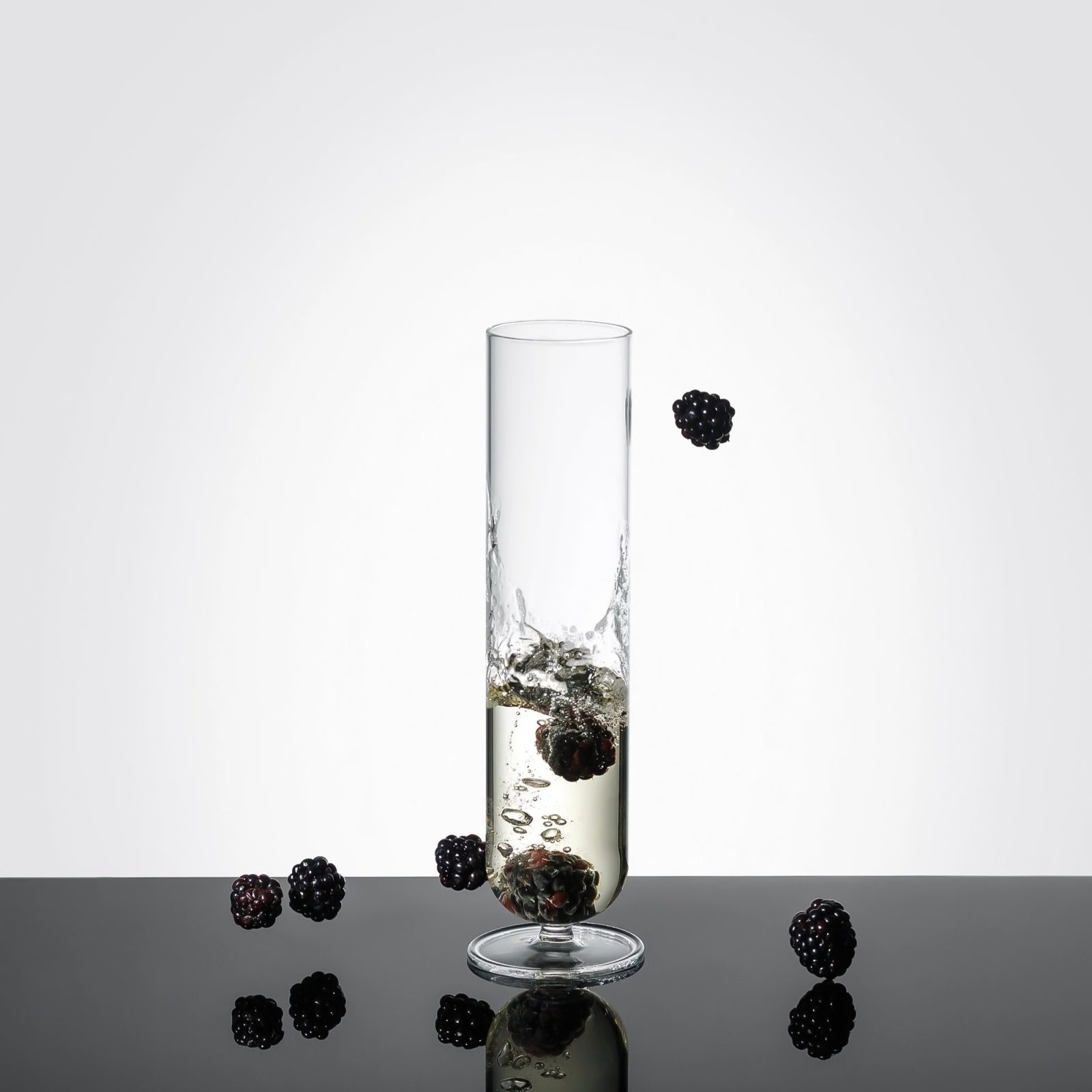 Inspired by test tubes, the Plustio Champagne Flute Glass transforms an ordinary laboratory item into a stylish design object. A modern take on a classic flute glass, Plustio rises to 21 cm in height to maximize your champagne tasting experience. The tall glass features a curved bottom and a circular base, offering a comfortable grip. Every glass is crafted by hand in Italy from 3.3 borosilicate glass that is lead-free, crystal-clear, and dishwasher-safe. An ideal companion for festive occasions with family and friends, the Plustio Champagne Flute Glass will help you celebrate birthdays, anniversaries, holidays, and special moments with a dash of style and extra conviviality.