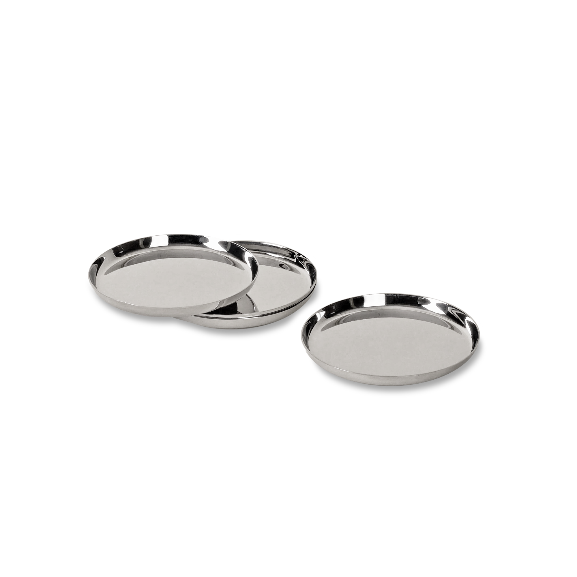 A cold drink has a way of leaving evidence. These stainless steel coasters are built for that moment: polished, weighty, and quietly satisfying to use. Each one is a shallow steel tray with a low lip, so condensation and the odd drip stay contained instead of turning into rings on wood or stone. Flip them over and you’ll find an anti-slip pad that keeps the coaster from skating and softens the sound when you set a glass down.
