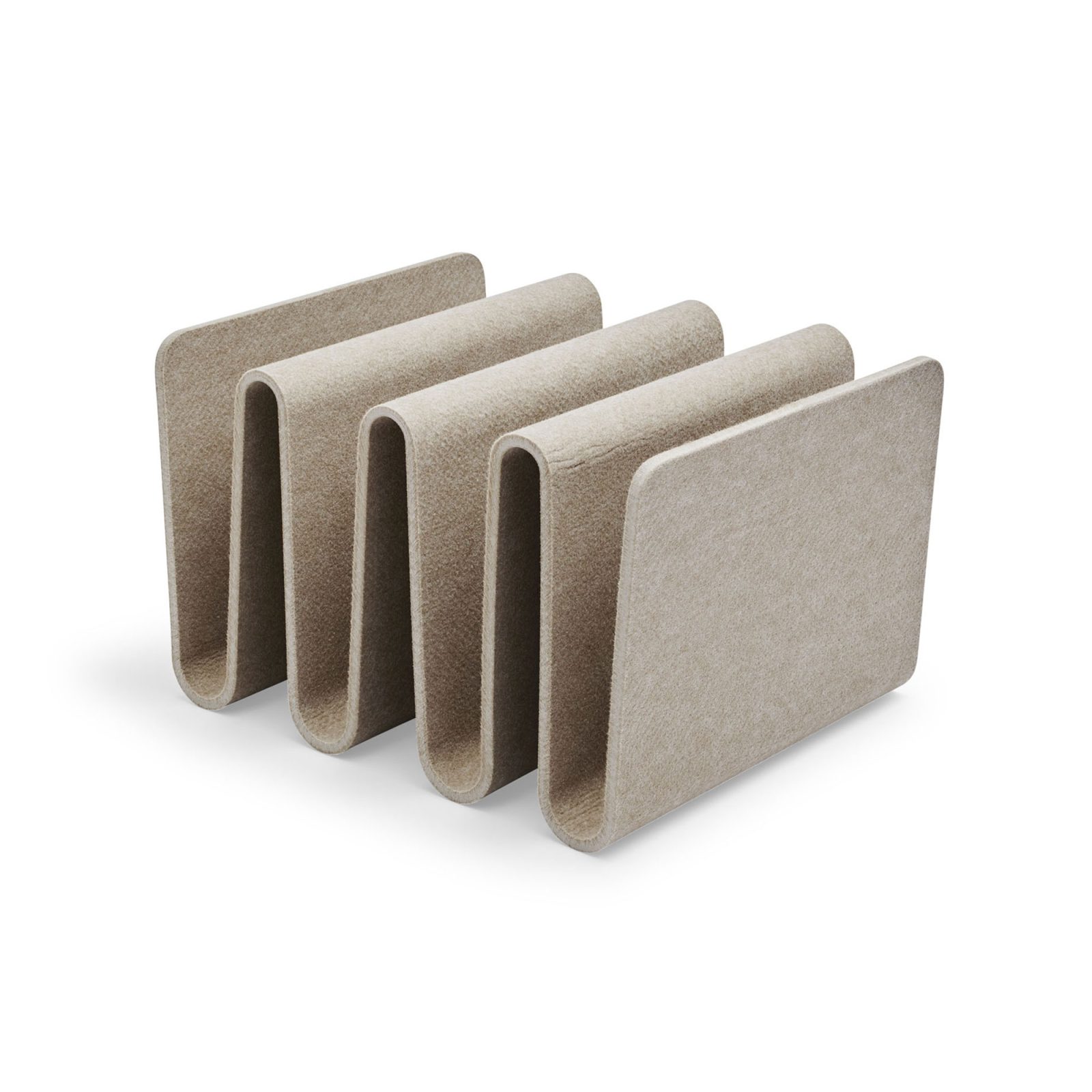 A story of contrasts, the Pulse Magazine Holder features an eye-catching design that creates a focal point in modern interiors. Designed by design duo NOIDOI for Skagerak, the holder brings together form and function. The molded felt material is soft yet hard-wearing as well as firm but flexible. The textured surface of the fabric gives another dimension to the simple design. Made from recycled plastic, this molded felt magazine holder is as green as it is practical. The storage spaces are perfect for not only magazines, but also books, photo albums, or even board games. Thanks to its compact shape, the Pulse Magazine Holder will fit into any space.