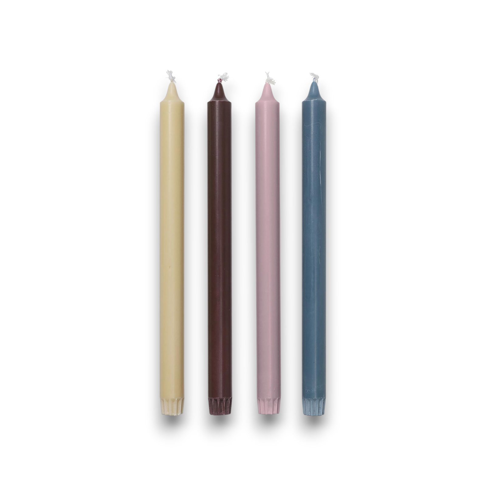 About 11 hours per taper—steady light from prep to nightcap. Pure Candles are slim, solid-dyed tapers made from pure stearin for a clean, even burn.